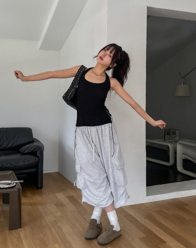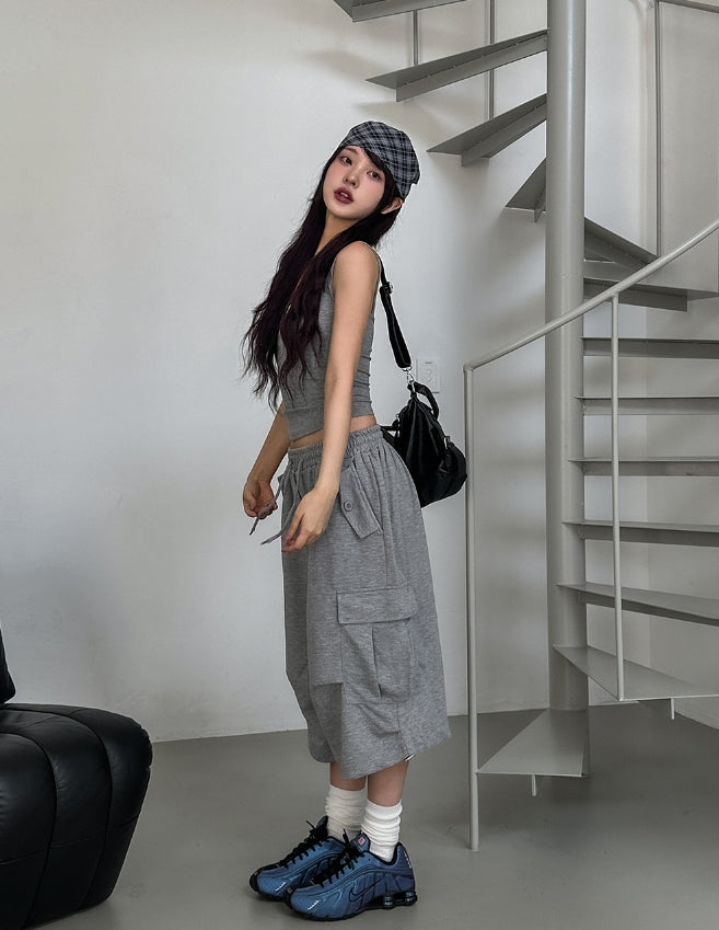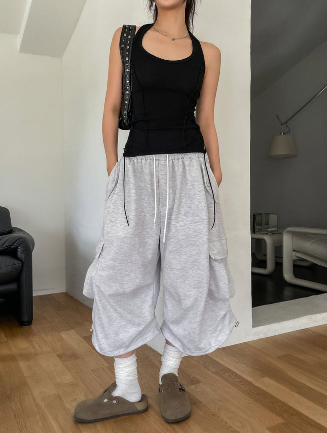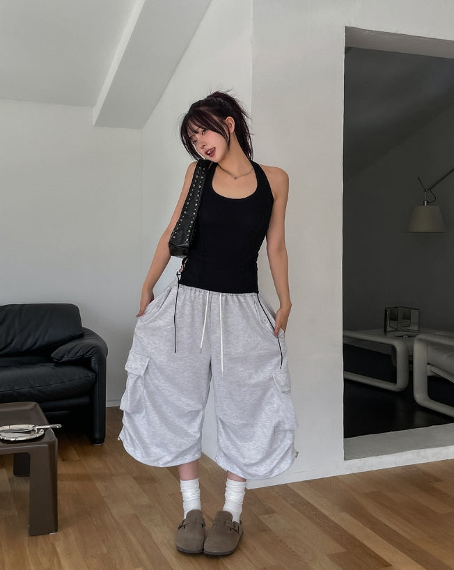 Bloss Pintuck Cargo Sweat Bermuda Pants