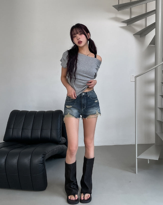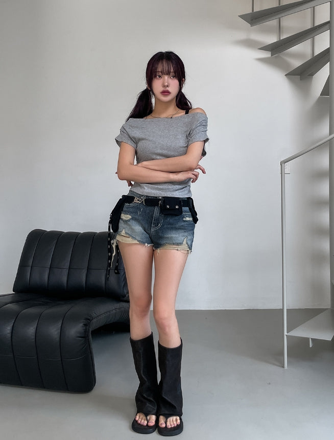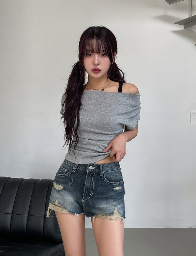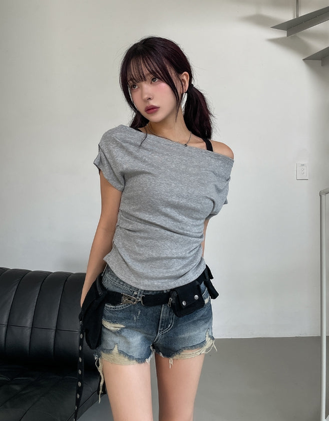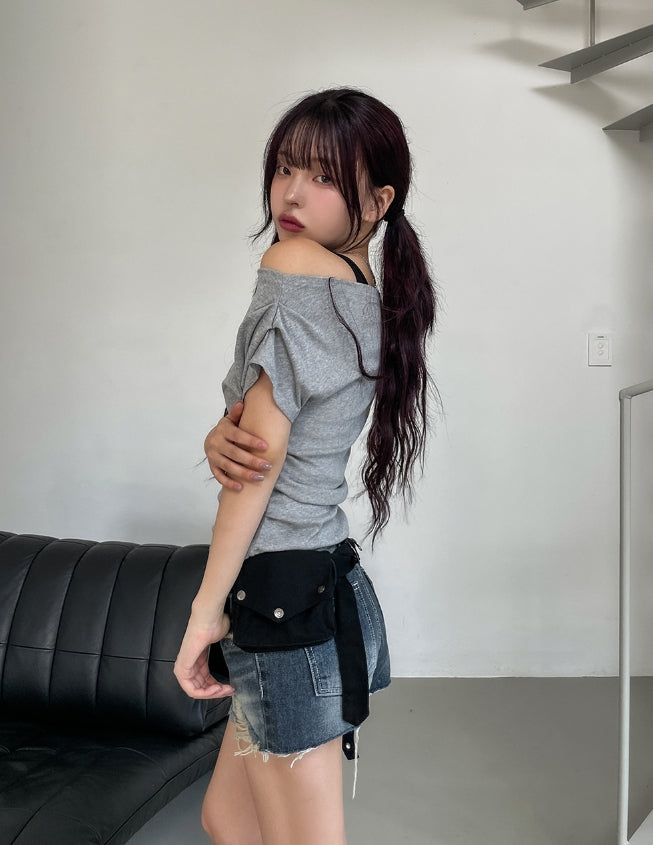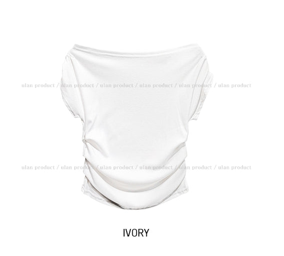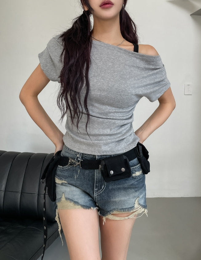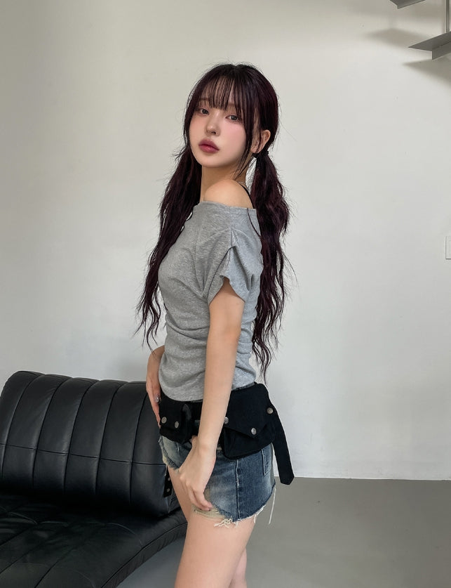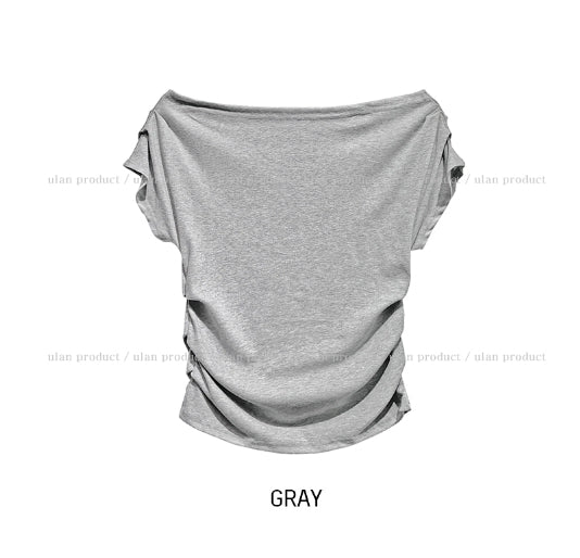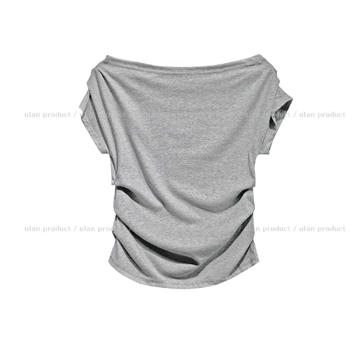 ボンディドレープピンタックオフショルダー半袖Tシャツ