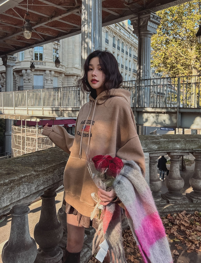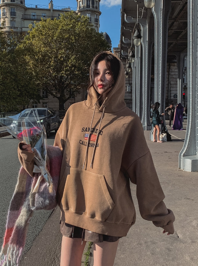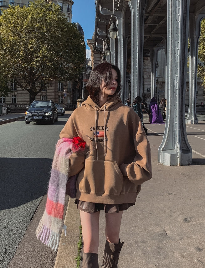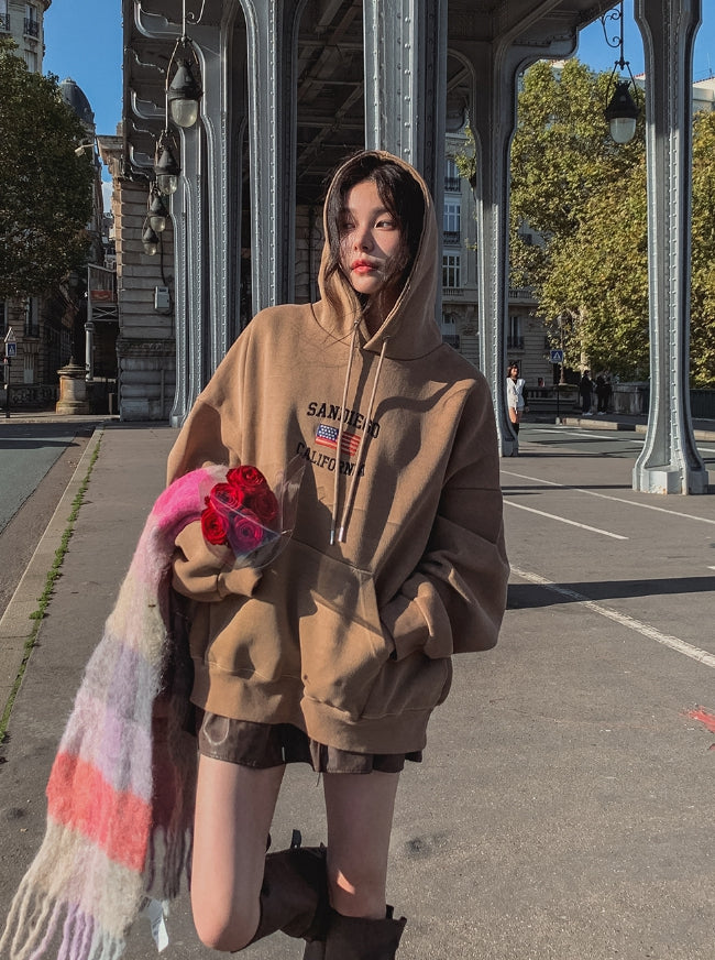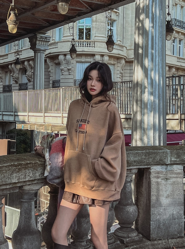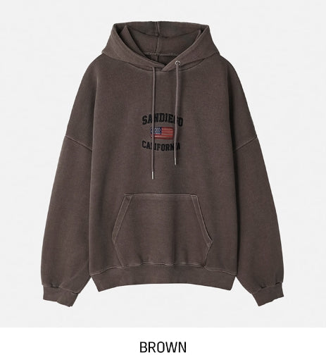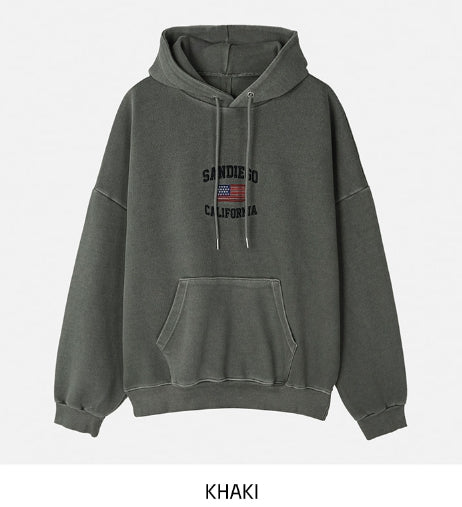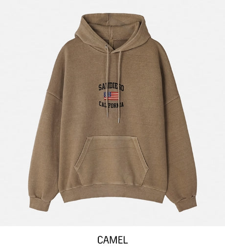 カリフォルニアアメリカンフラッグ刺繍ピグメントパーカー