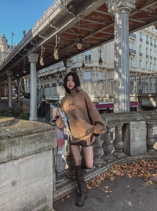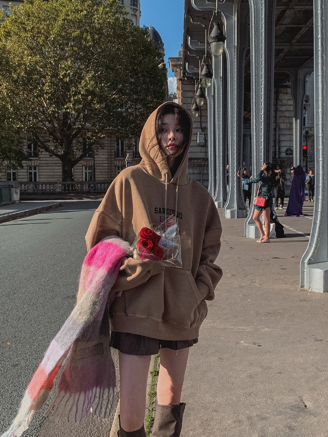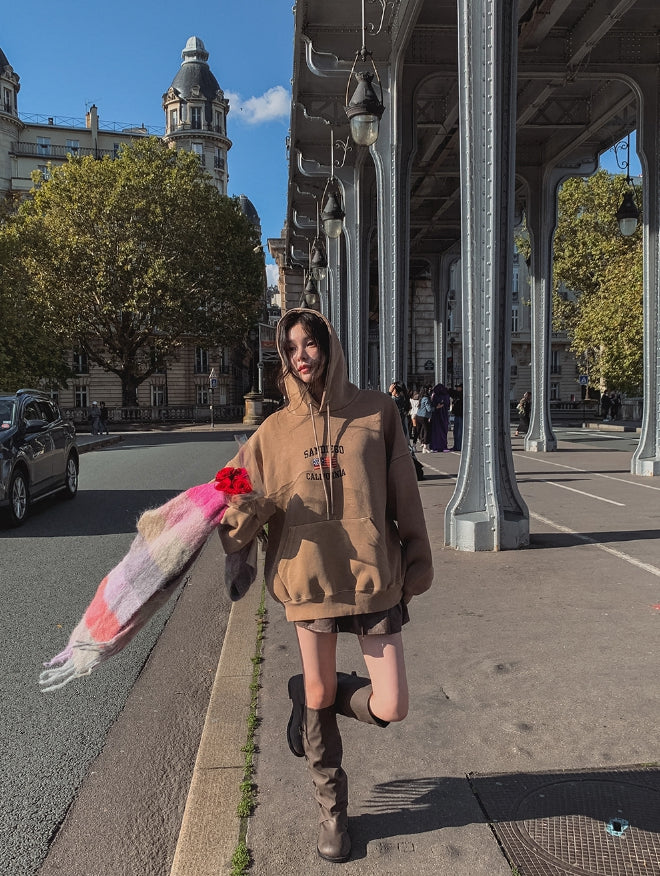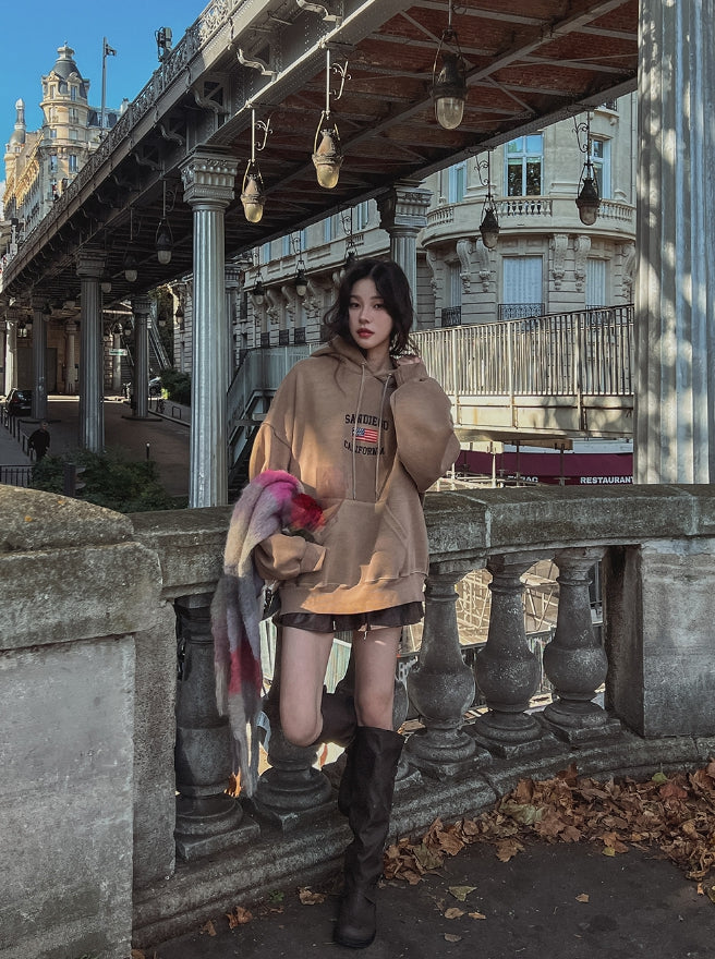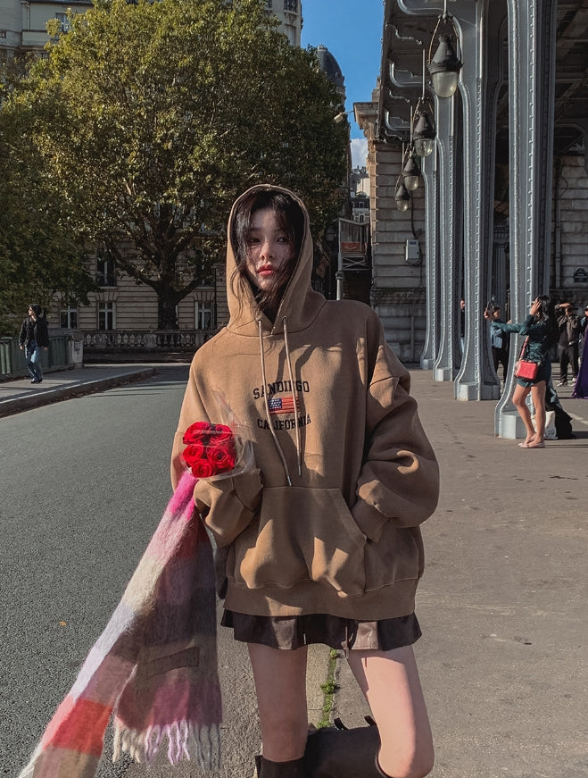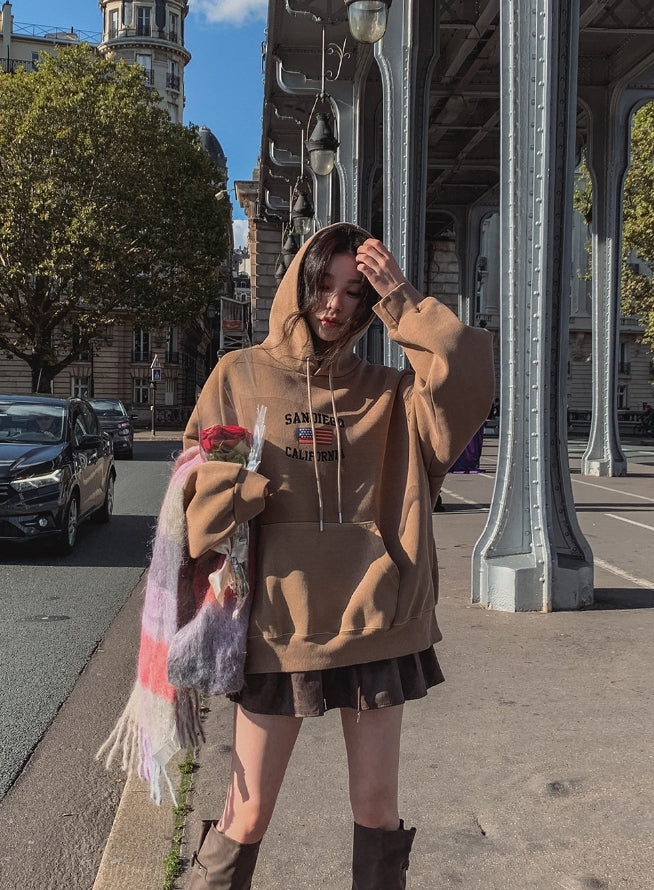 カリフォルニアアメリカンフラッグ刺繍ピグメントパーカー