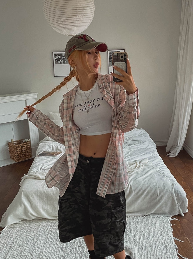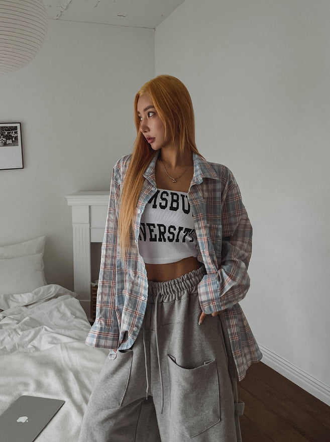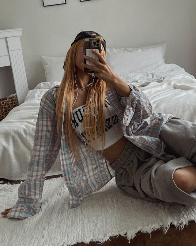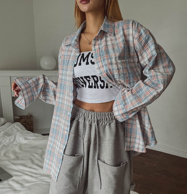 Candy Soft Loose-Fit Cotton Checkered Shirt