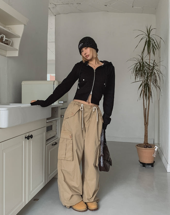 Caro Stud Slim Fit Two Way Hooded Zip-Up