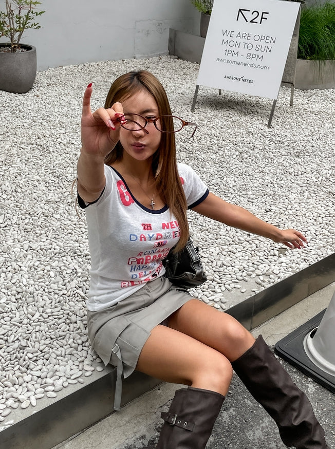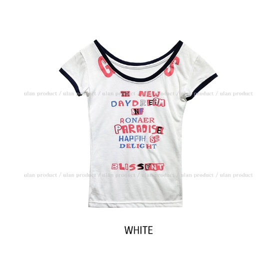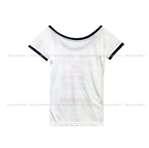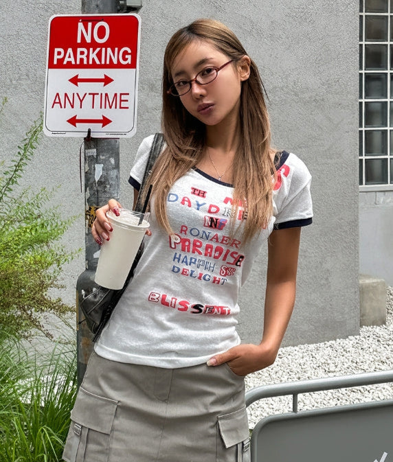 カートゥーンレタリングシースルーリンガー半袖Tシャツ