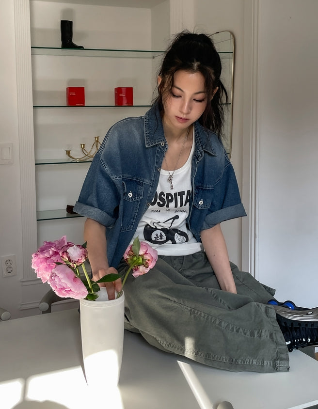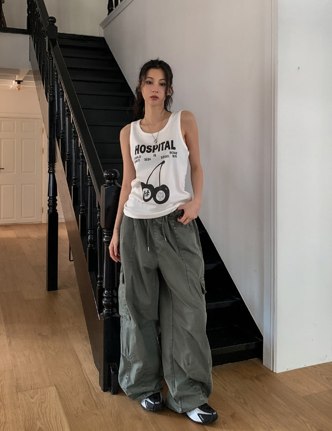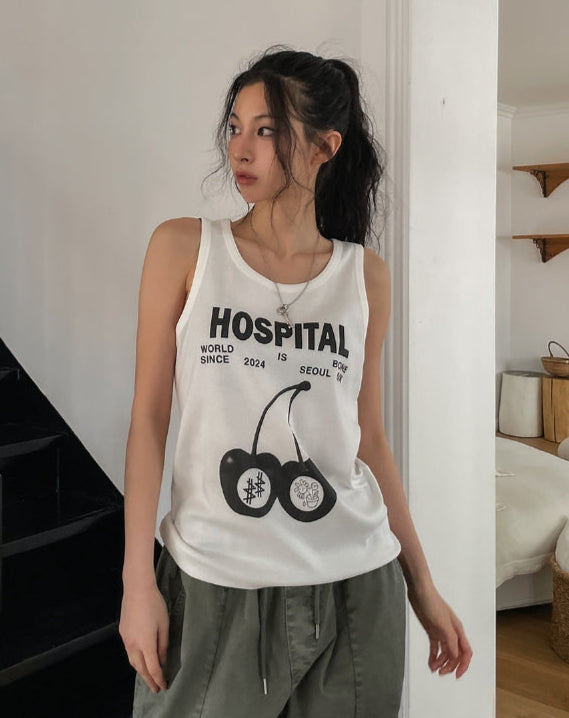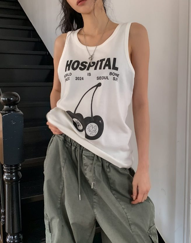 チェリープリントルーズフィットタンクトップ