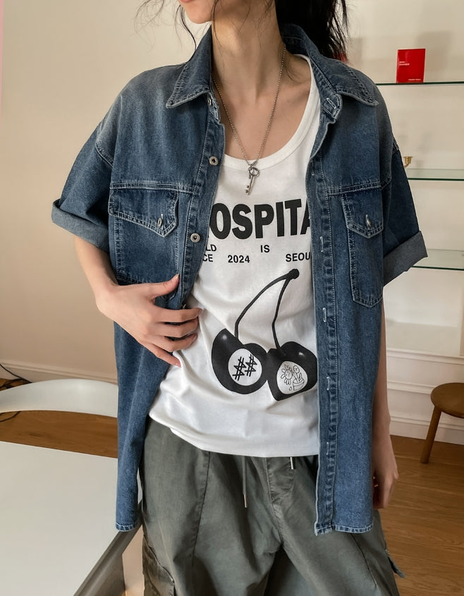 Cherry Print Loose Fit Sleeveless