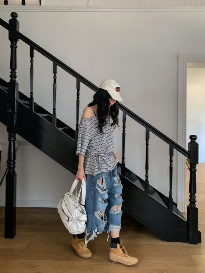 チーフビンテージダメージバミューダデニムパンツ