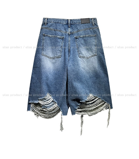 Chif Vintage Damage Bermuda Denim Pants