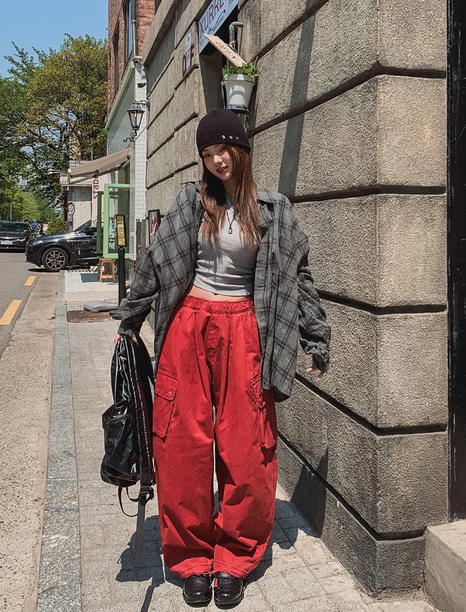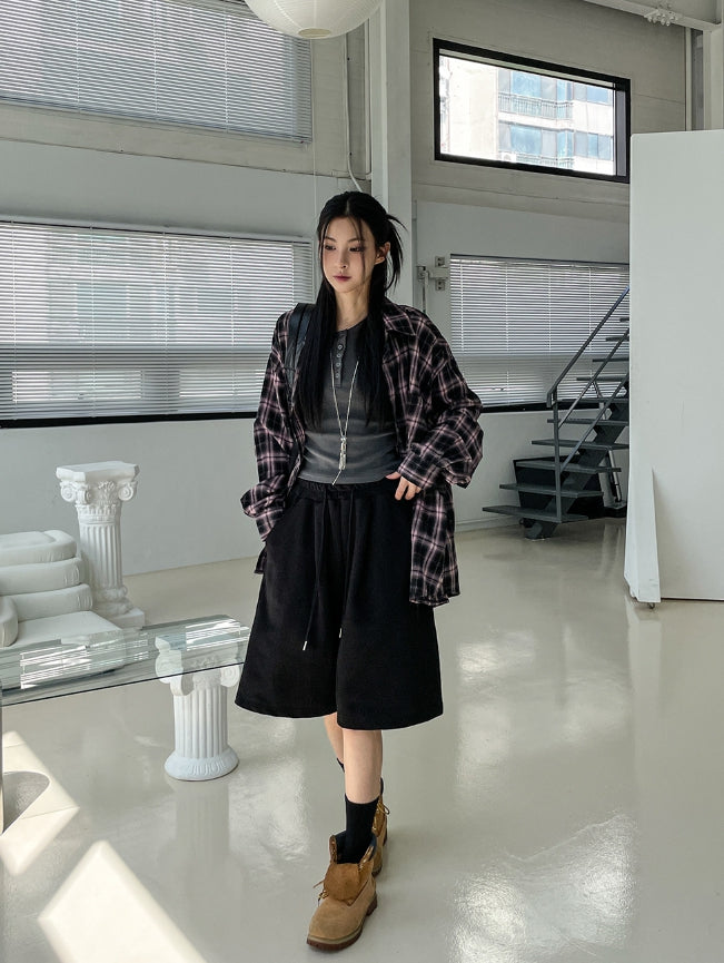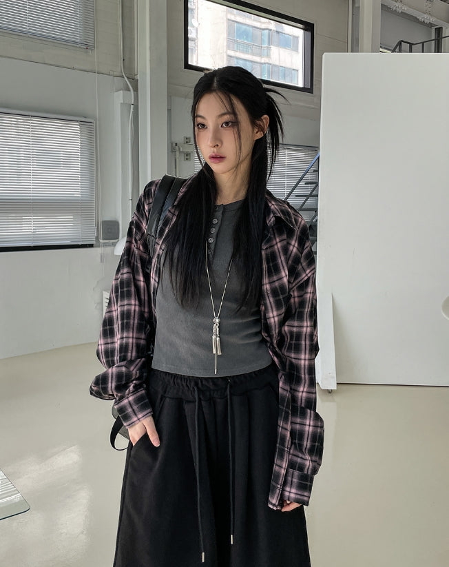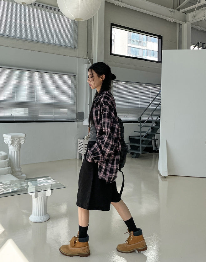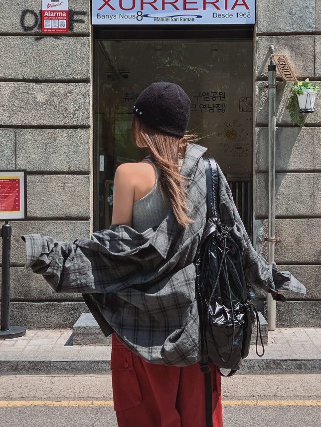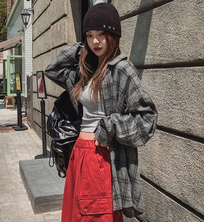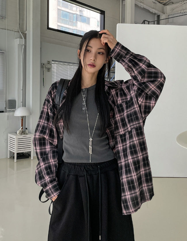 チルドコットンオーバーフィットチェックシャツ