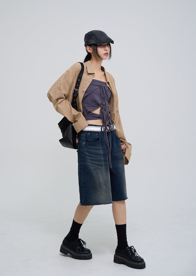 クローコットンオーバーフィットチェックシャツ