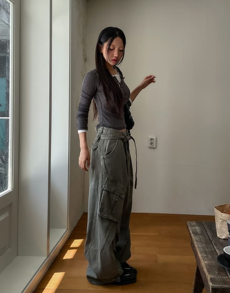 -166cm, top 44size , bottom 26(S) / Beige, Charcoal Sサイズ着用