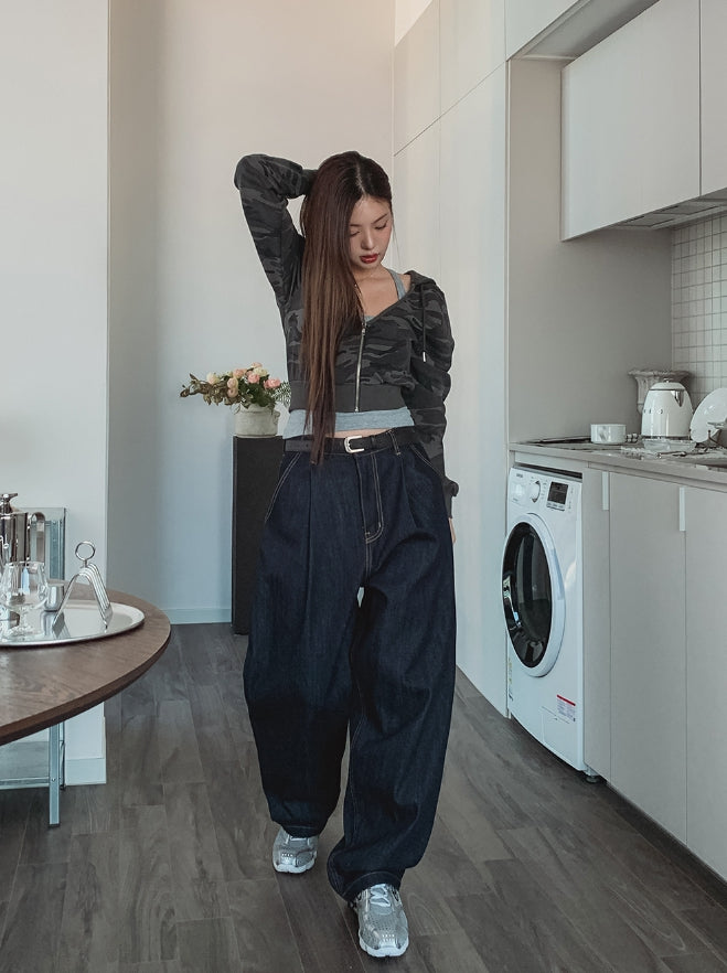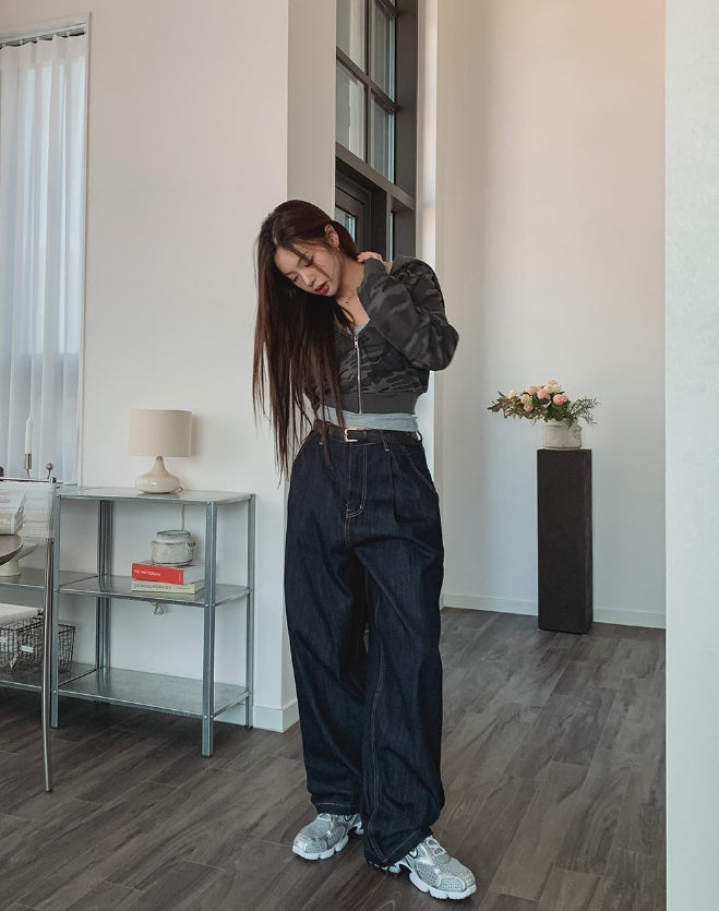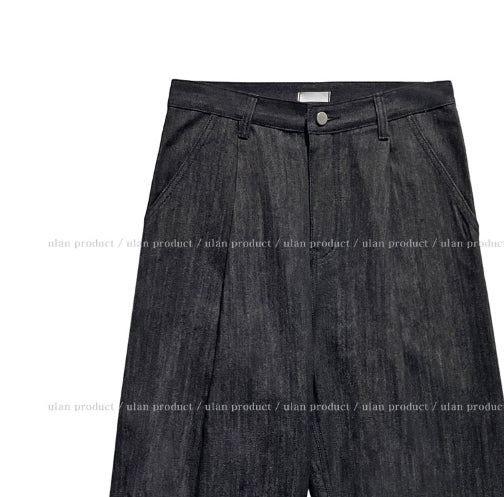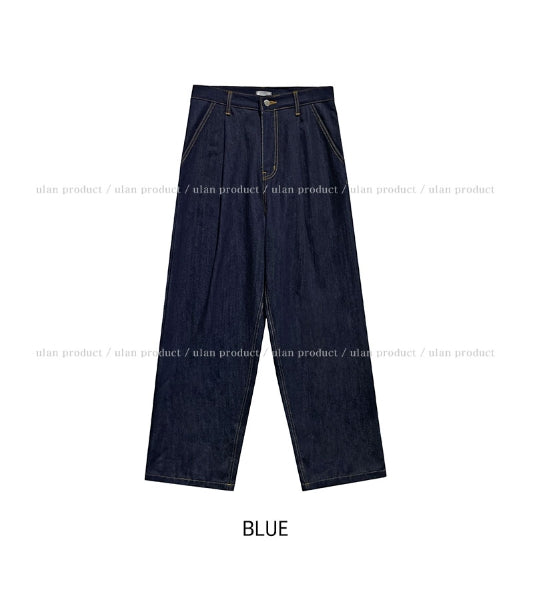 Comp raw denim pin tuck wide denim pants
