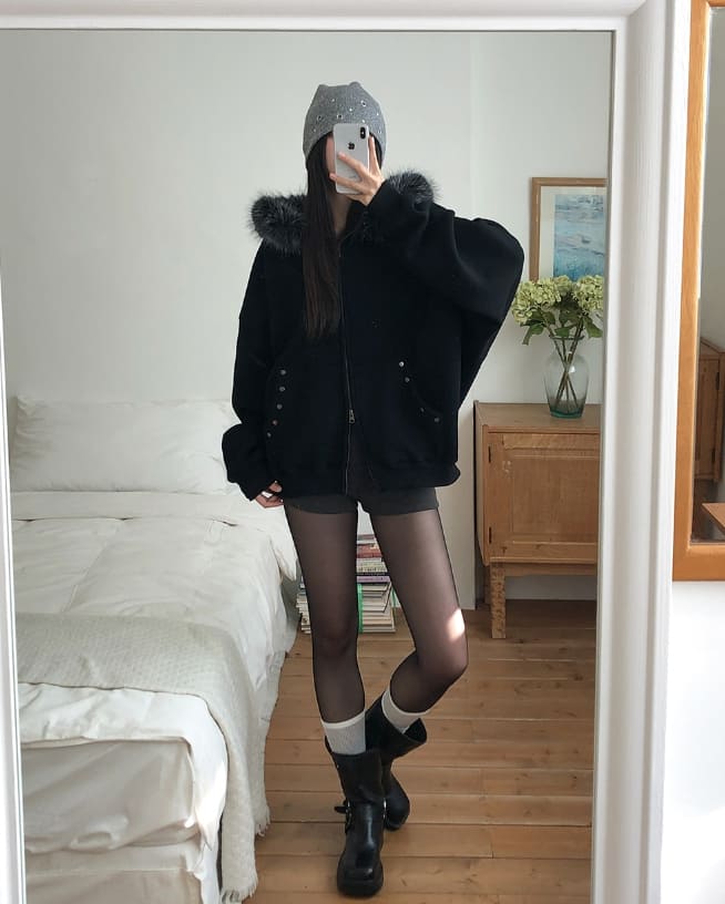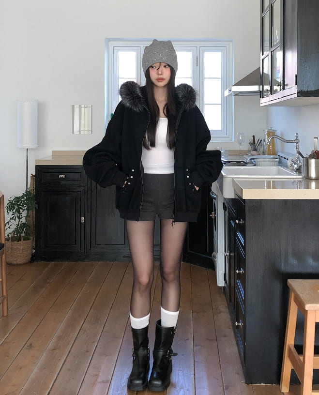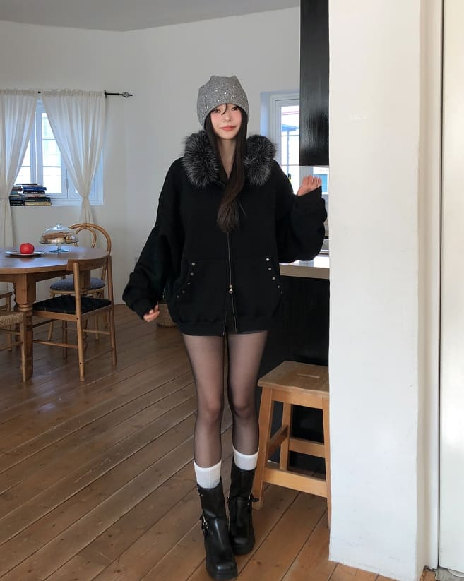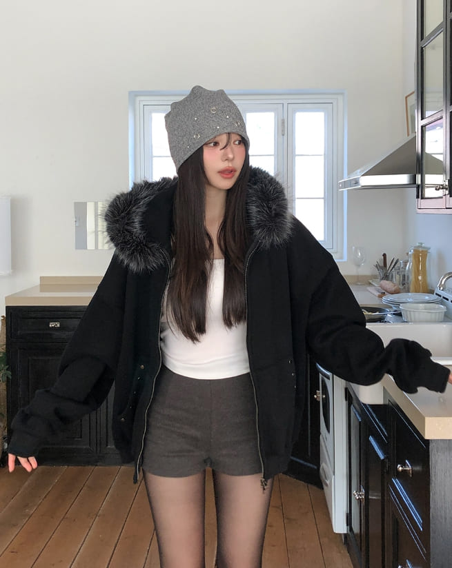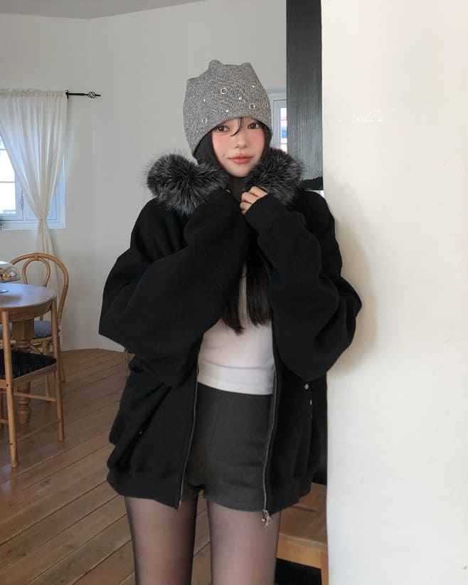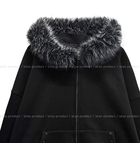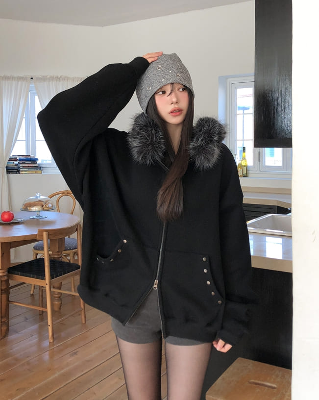 Cor Stud Trimming Fur Warmer Hood Zip-Up