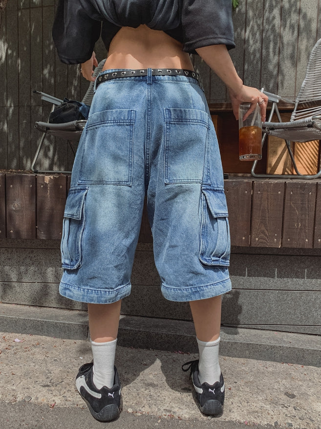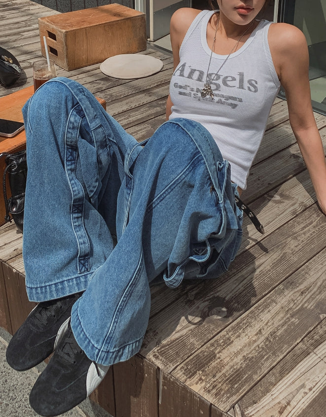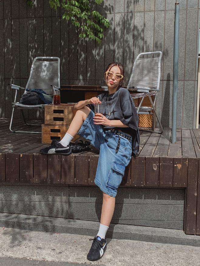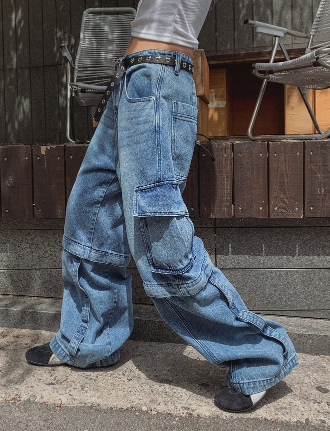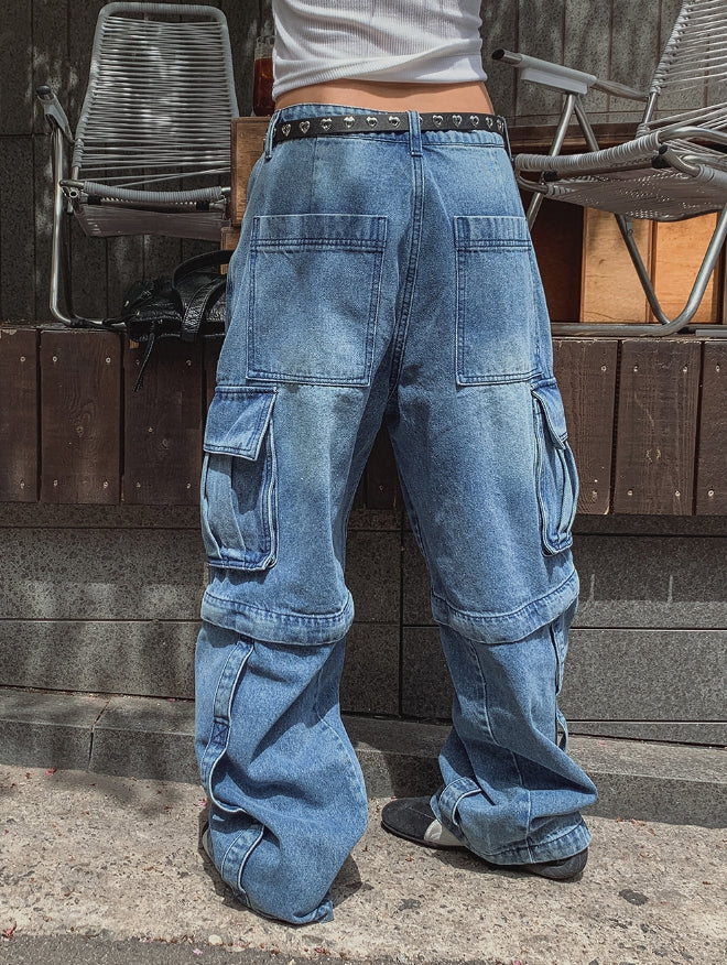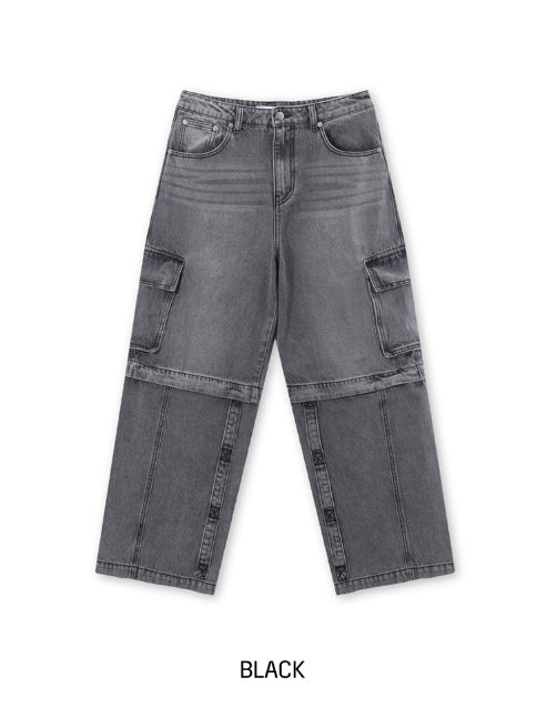 カットアウトジッパーカーゴツーウェイデニムパンツ