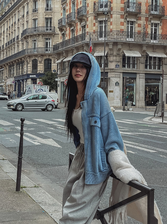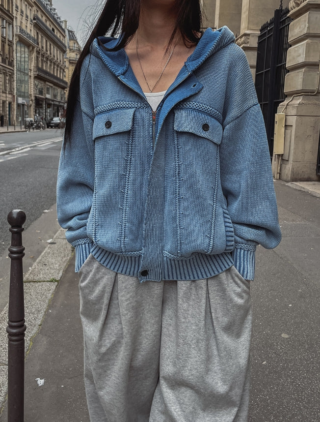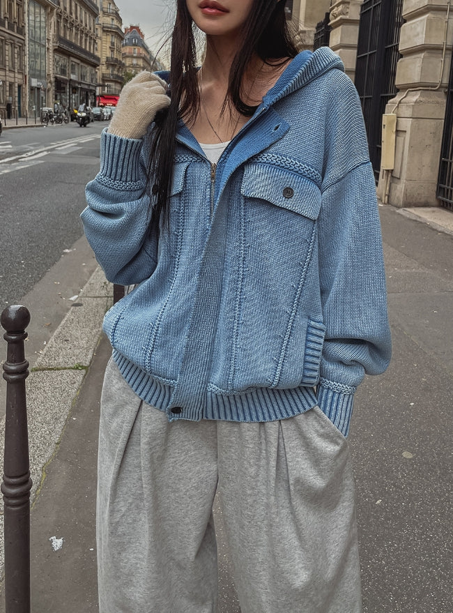 DeMon Washing Knitwear Hooded Jacket