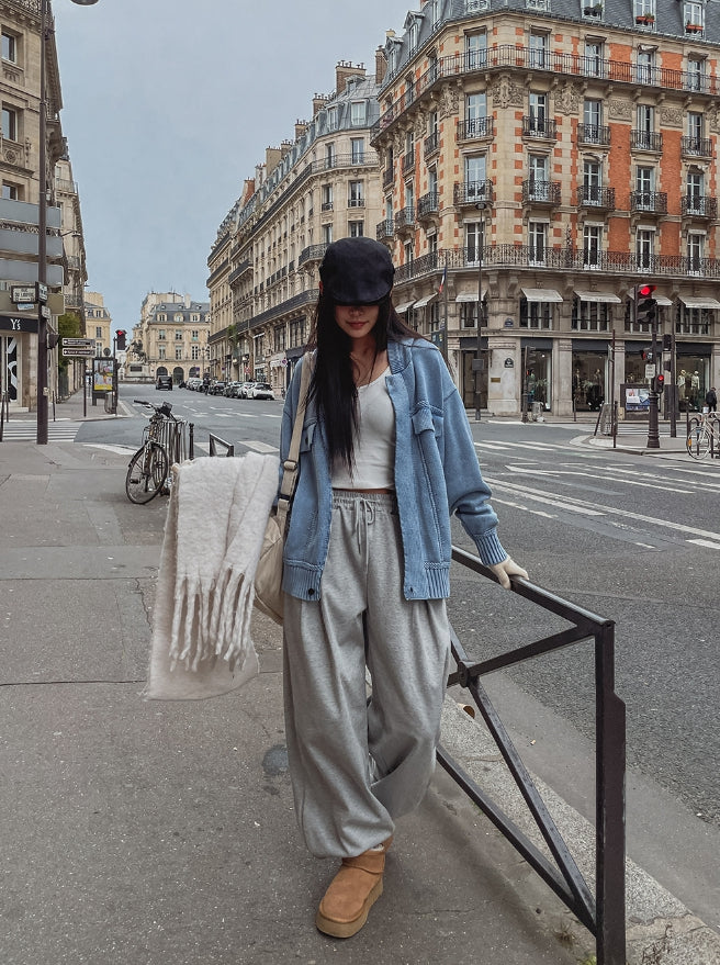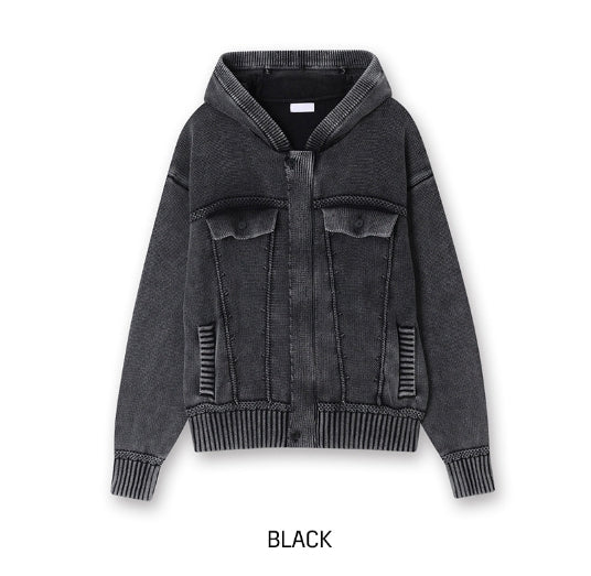デモンウォッシュ加工ニットフードジャケット