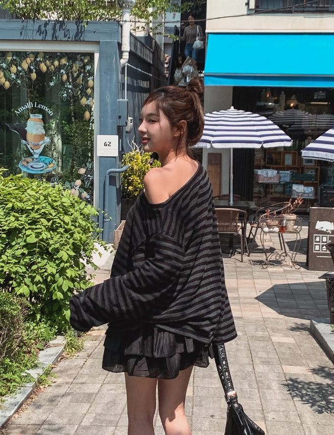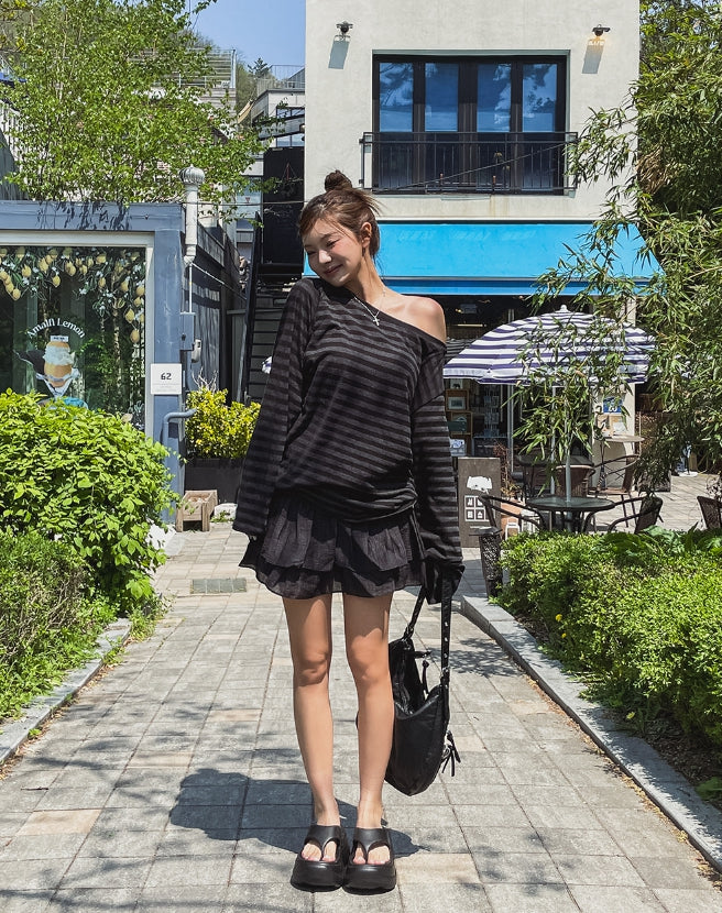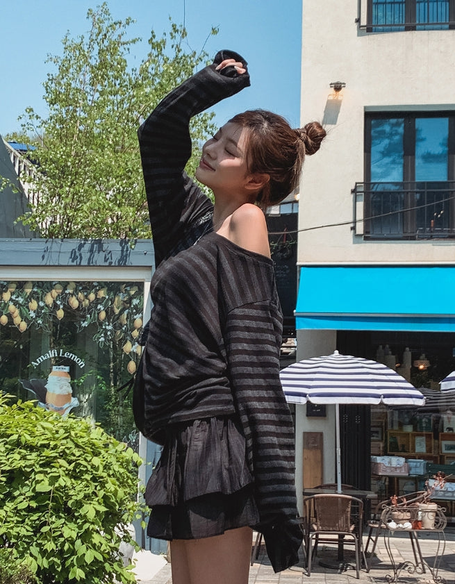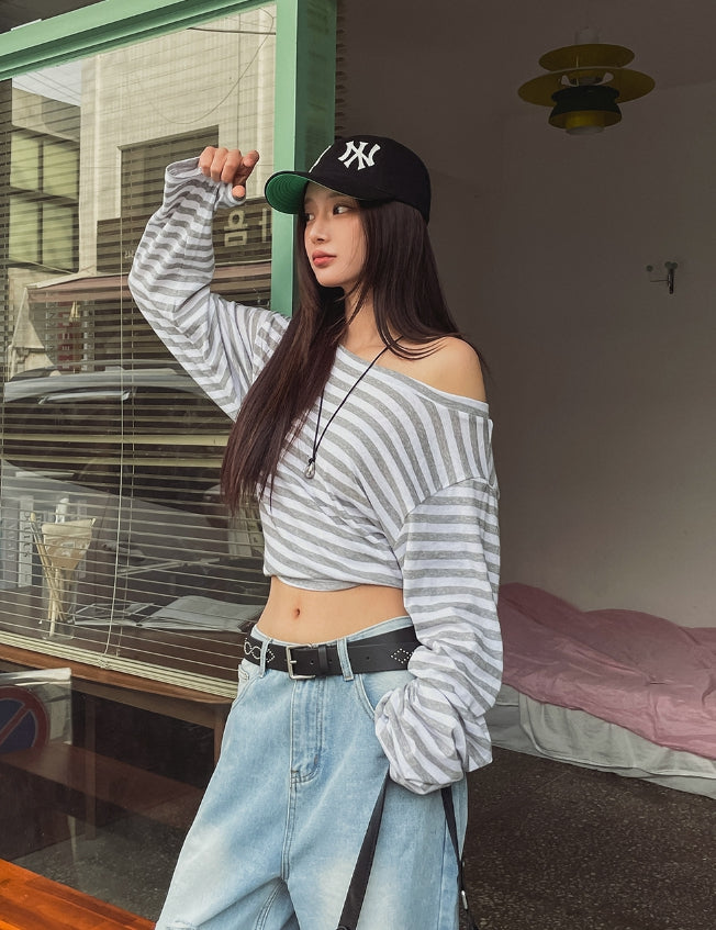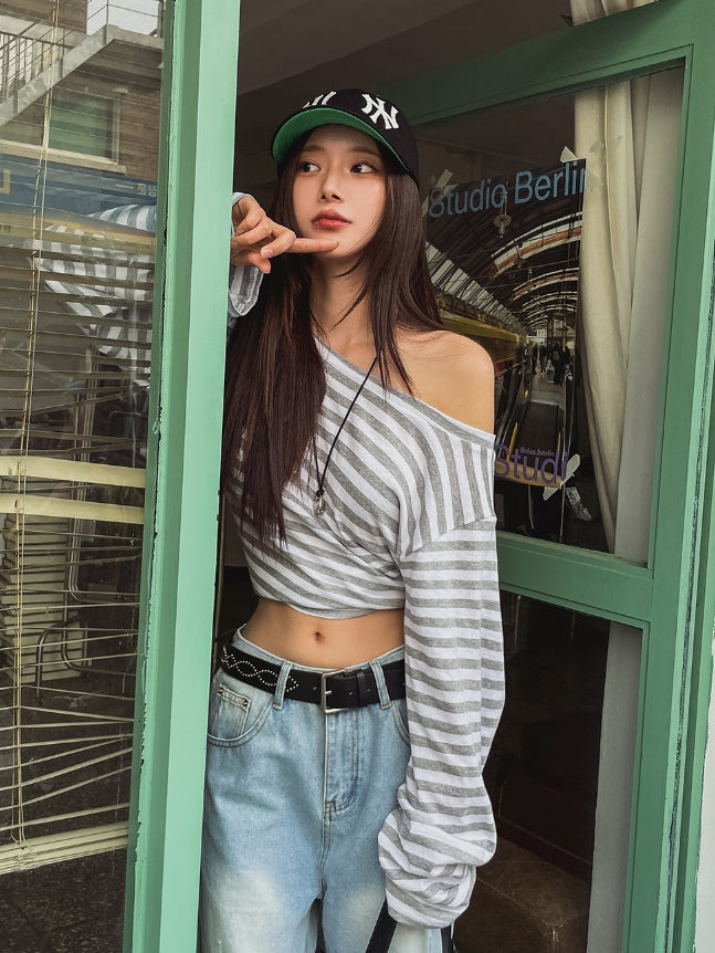 Dewey stripe off-shoulder long sleeves