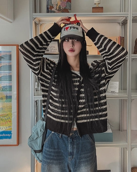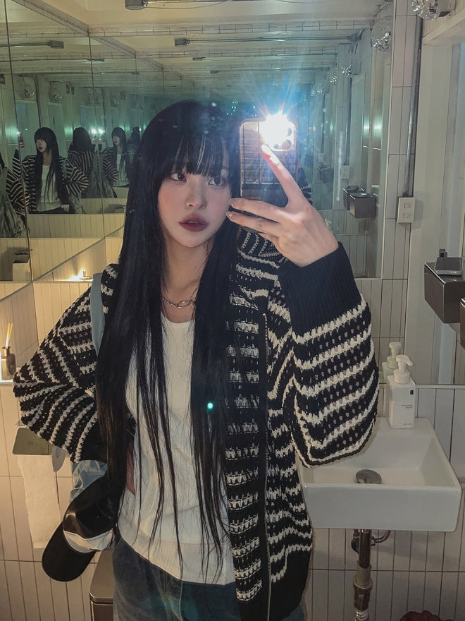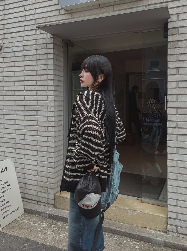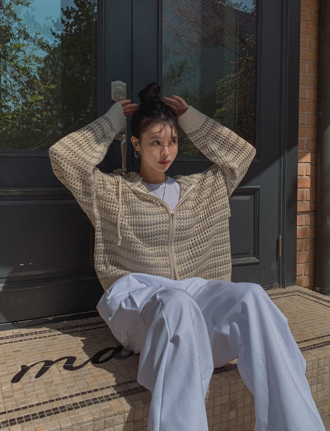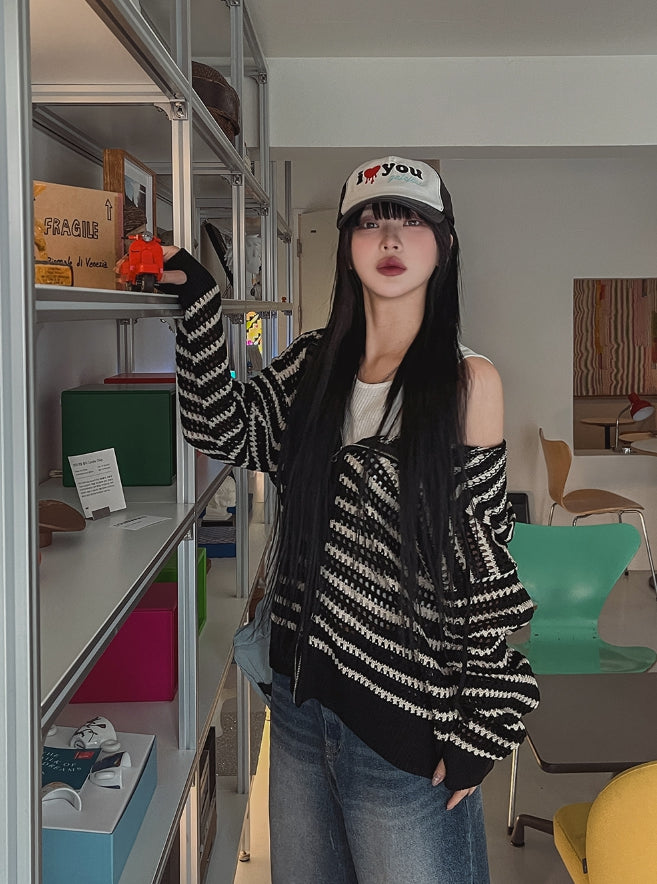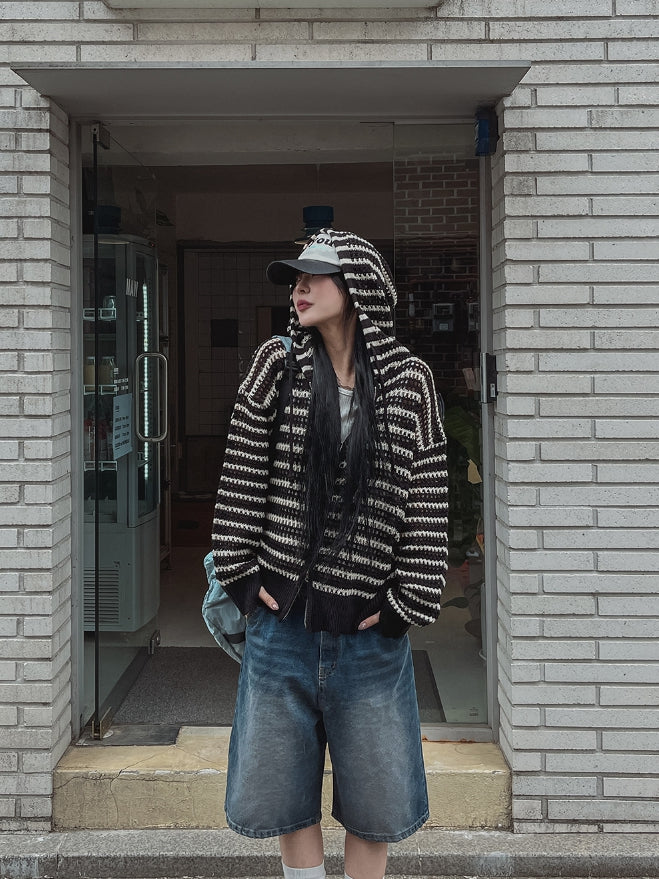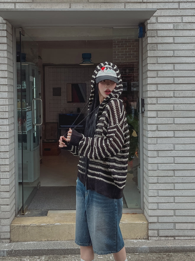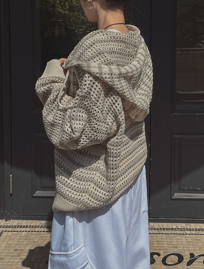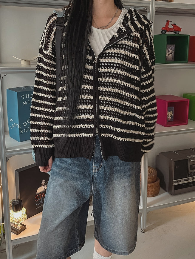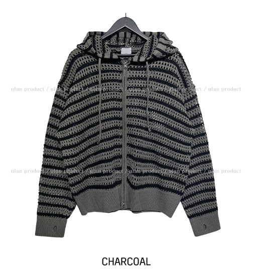 Field Stripe Mesh Warmer Hooded Zip-Up