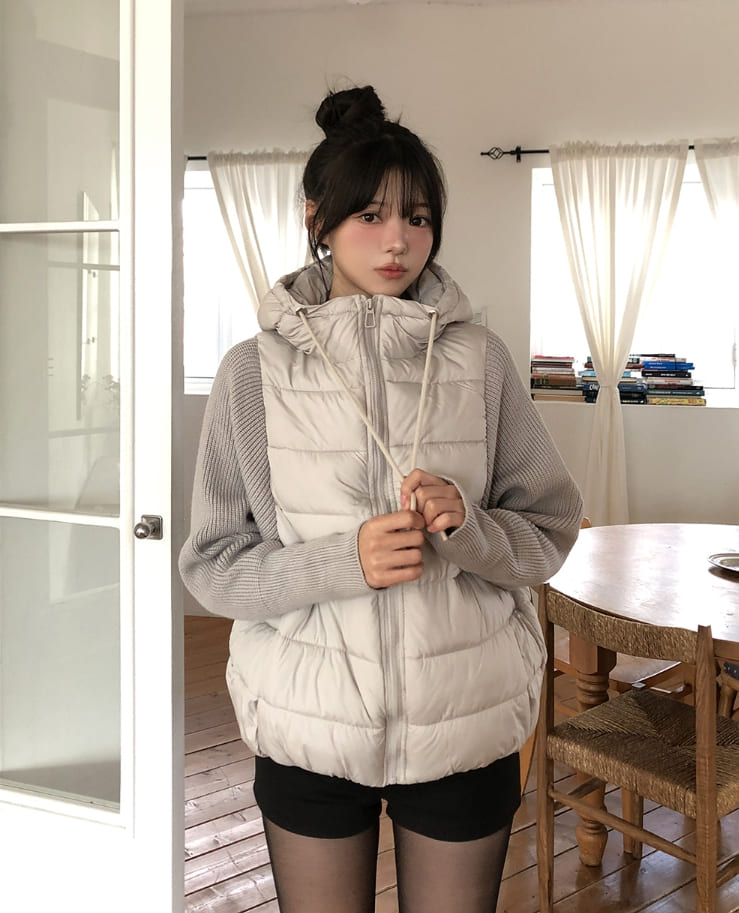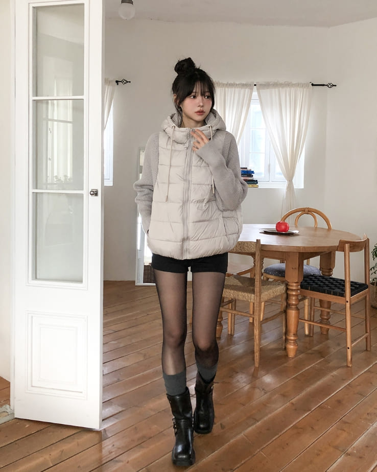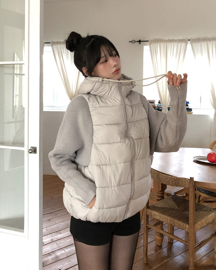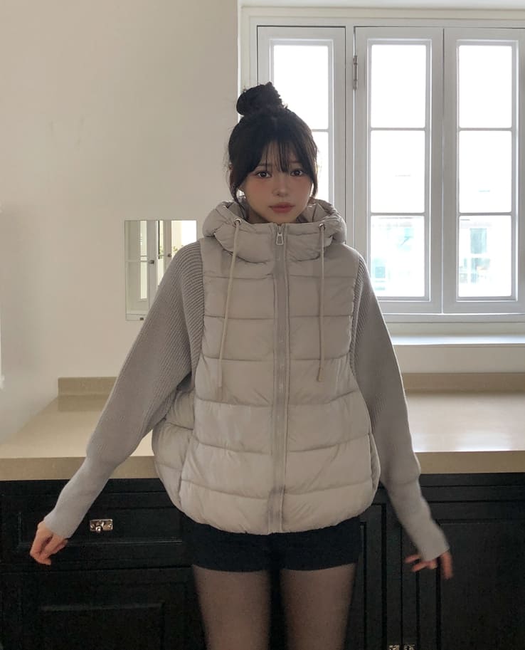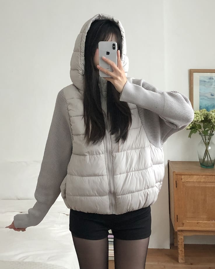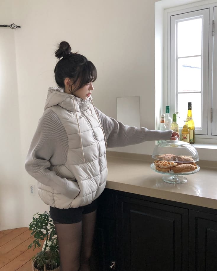 Fog Hooded Knit Lightweight Padded Jacket