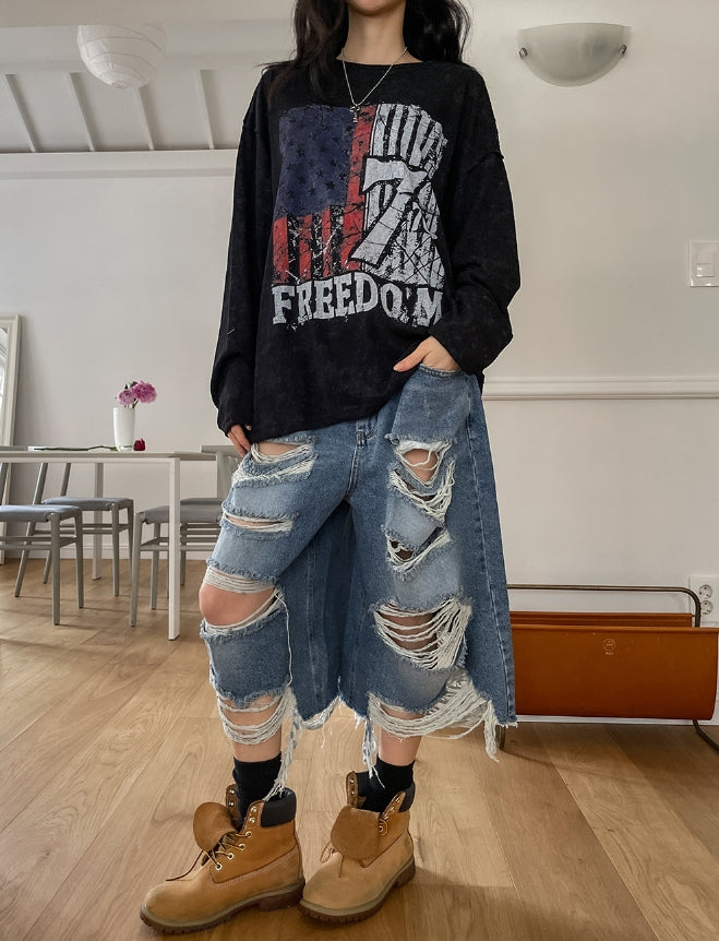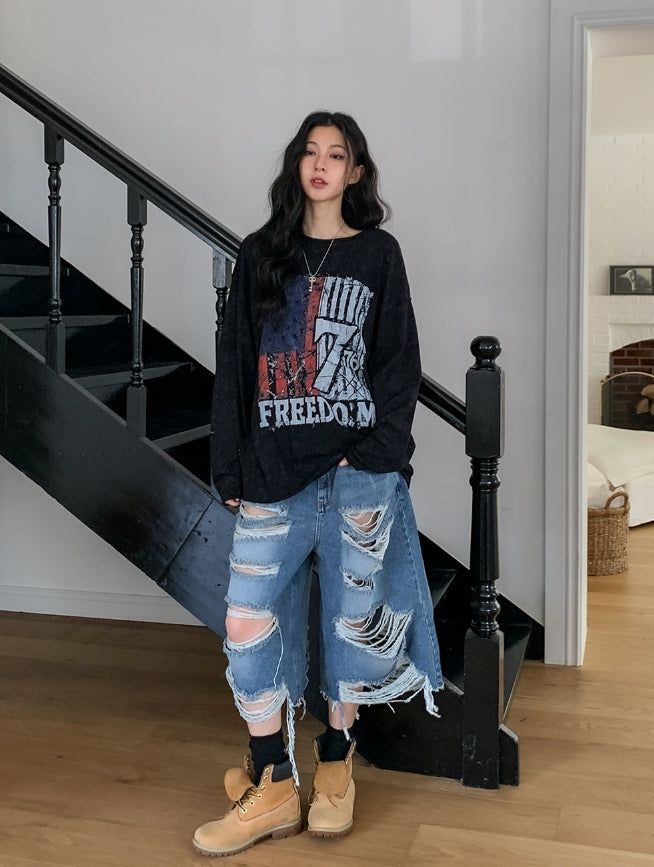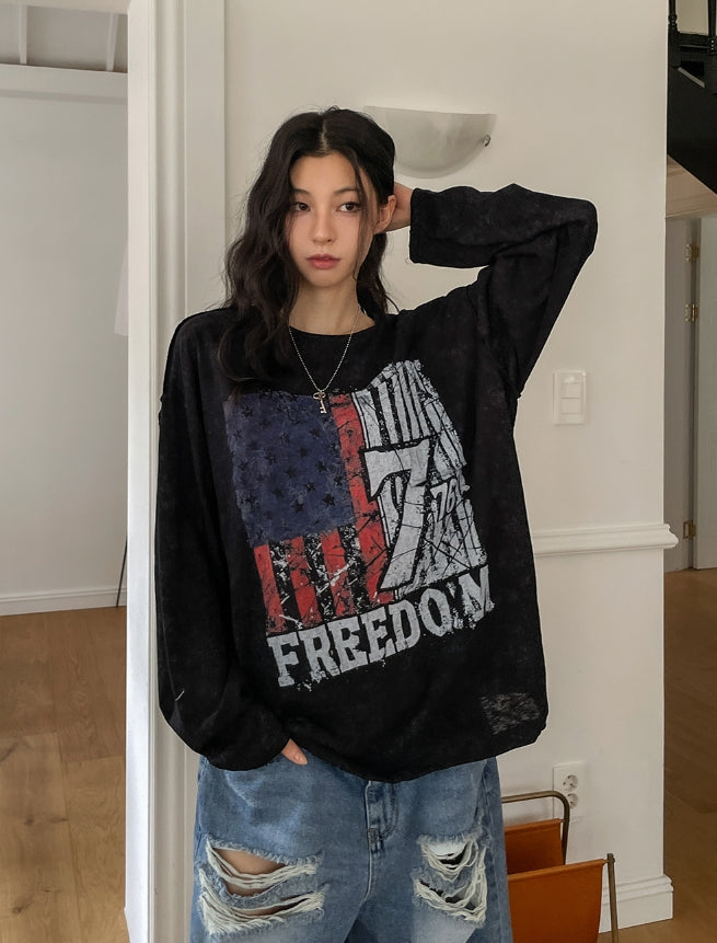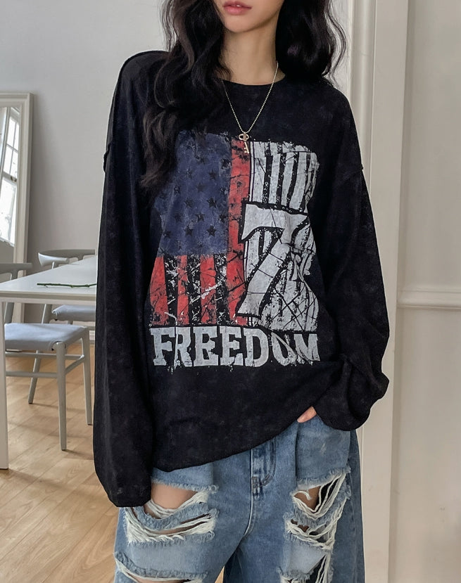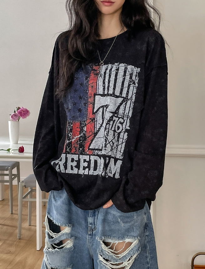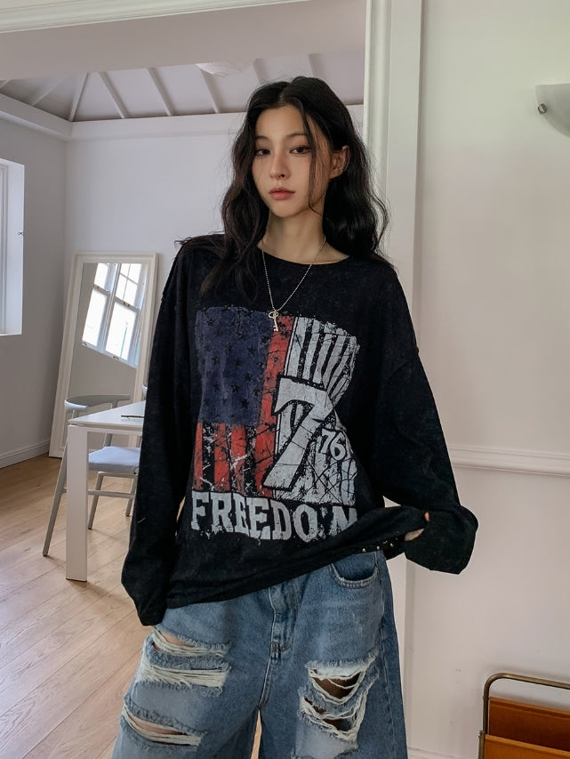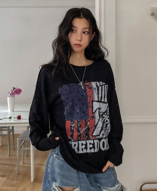 フレームビンテージプリント長袖Tシャツ