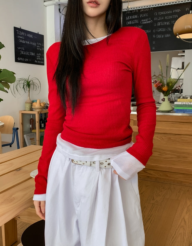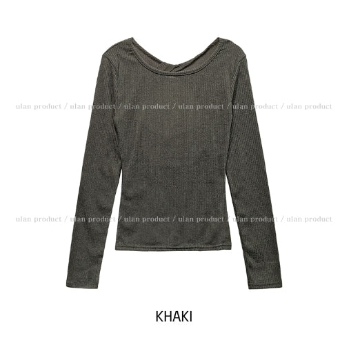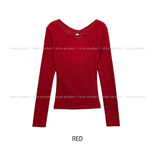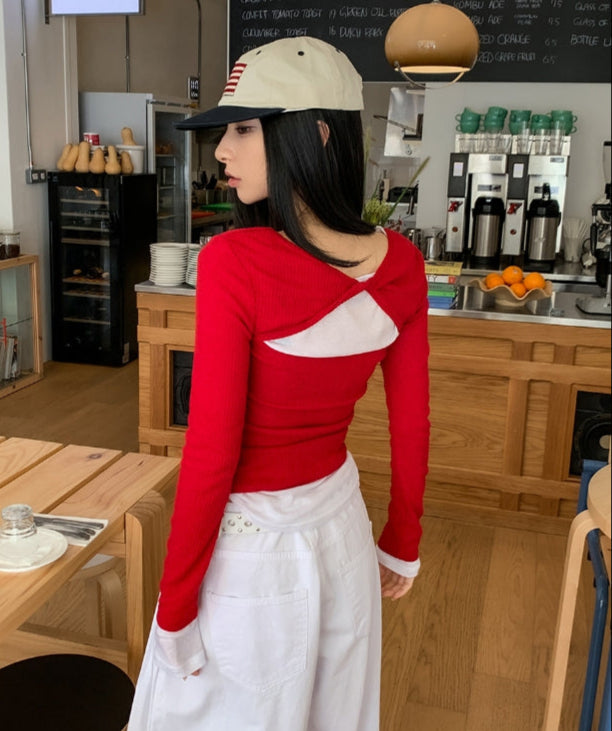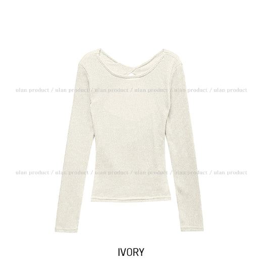 Fruit Back Twist Rib Knit Long Sleeve