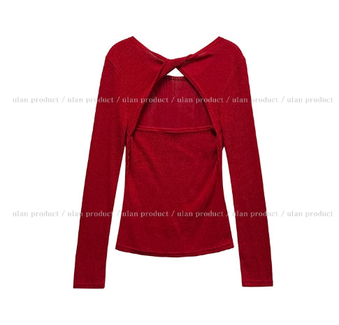 Fruit Back Twisted Golji Knit Long Sleeve