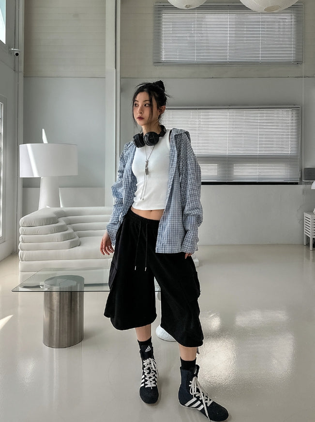 Fruit Check String Hood Shirt
