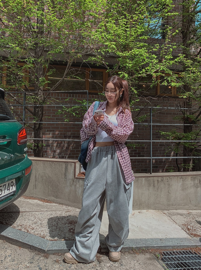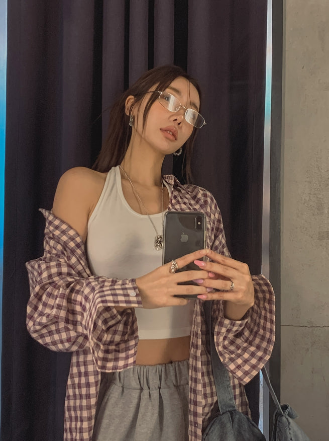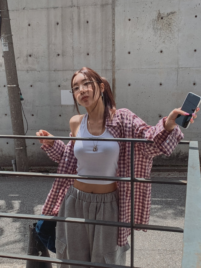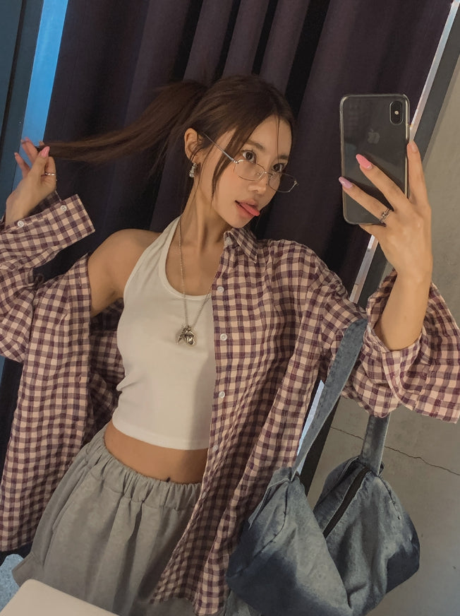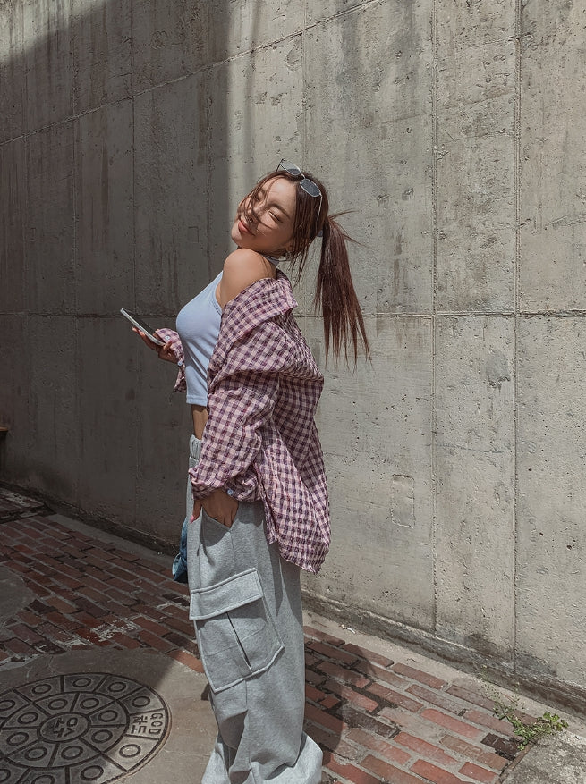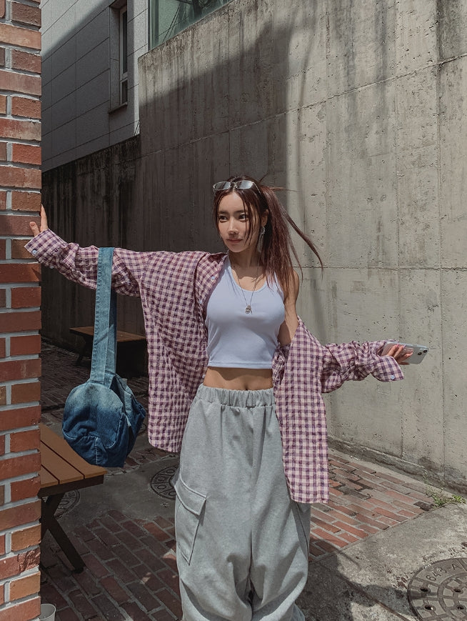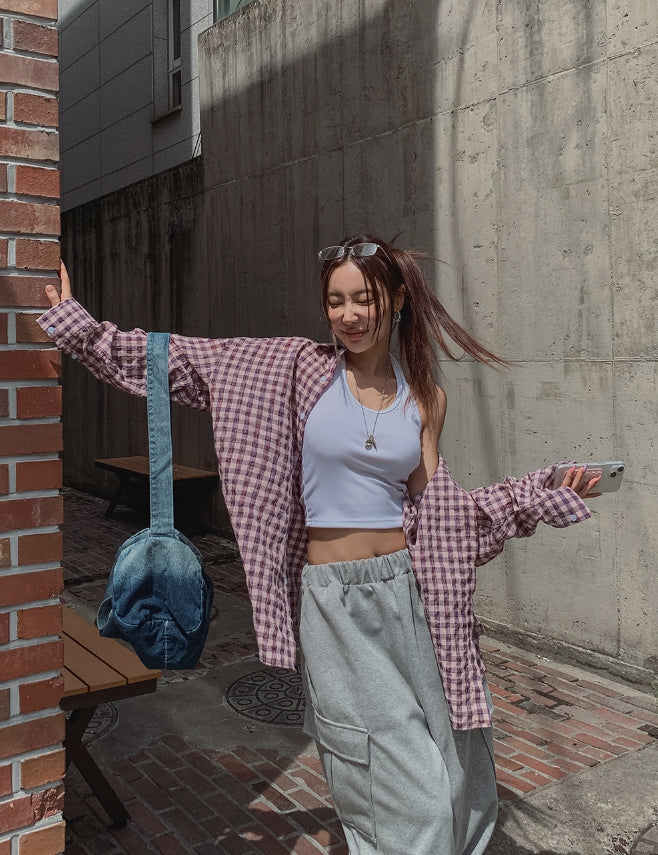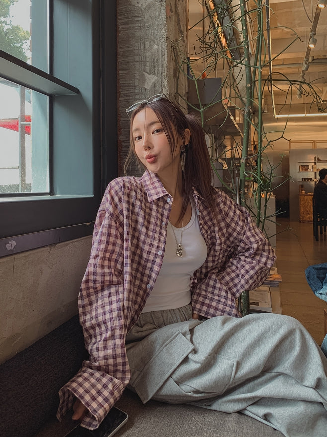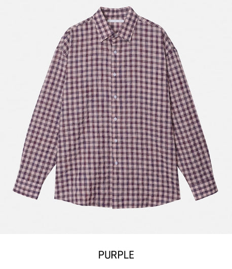 フルーツシアサッカーオーバーフィットチェックシャツ