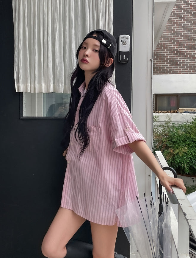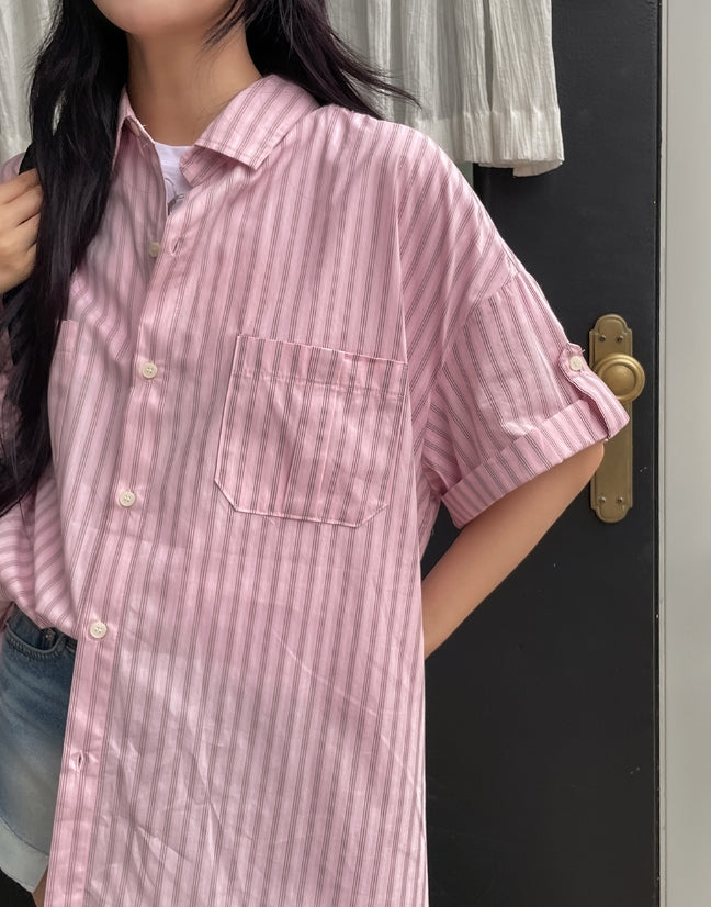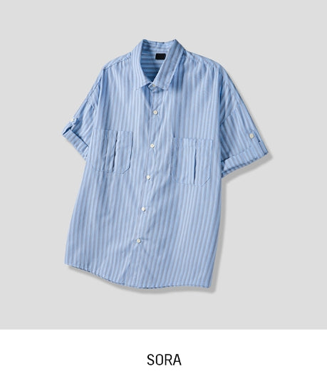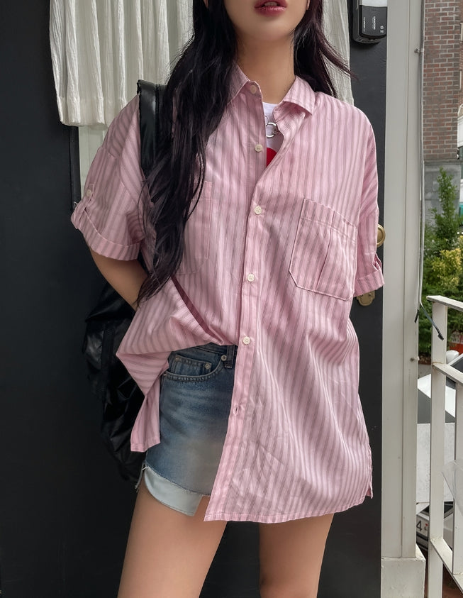 Fruity Pocket Stripe Roll-up Short Sleeve Shirt