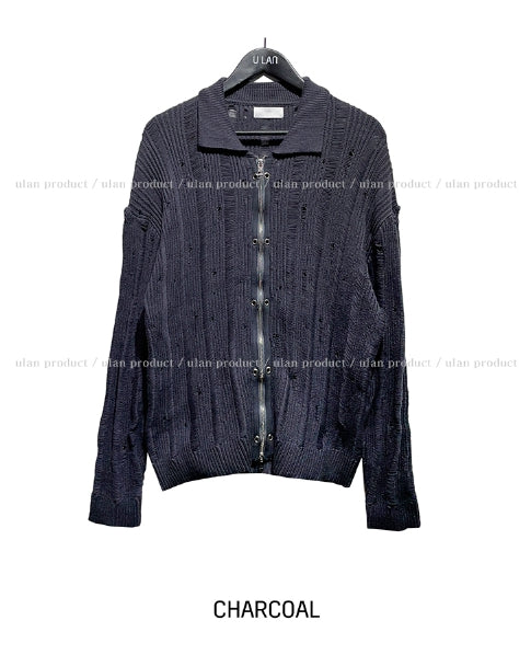 ヘイリーダメージアイレットツーウェイニットジップアップ