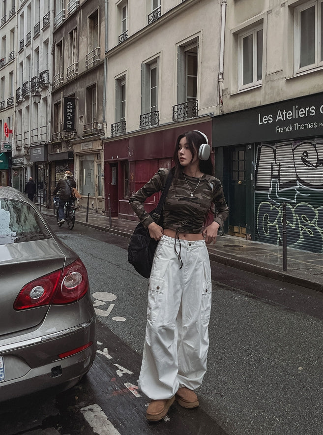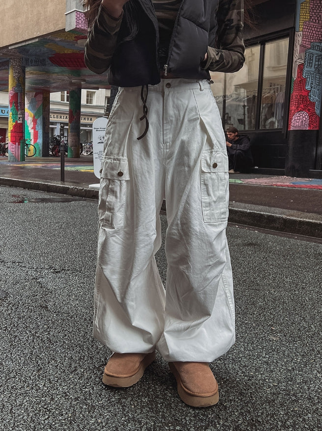 Summer 3 Snap Pintuck Wide Cargo Pants