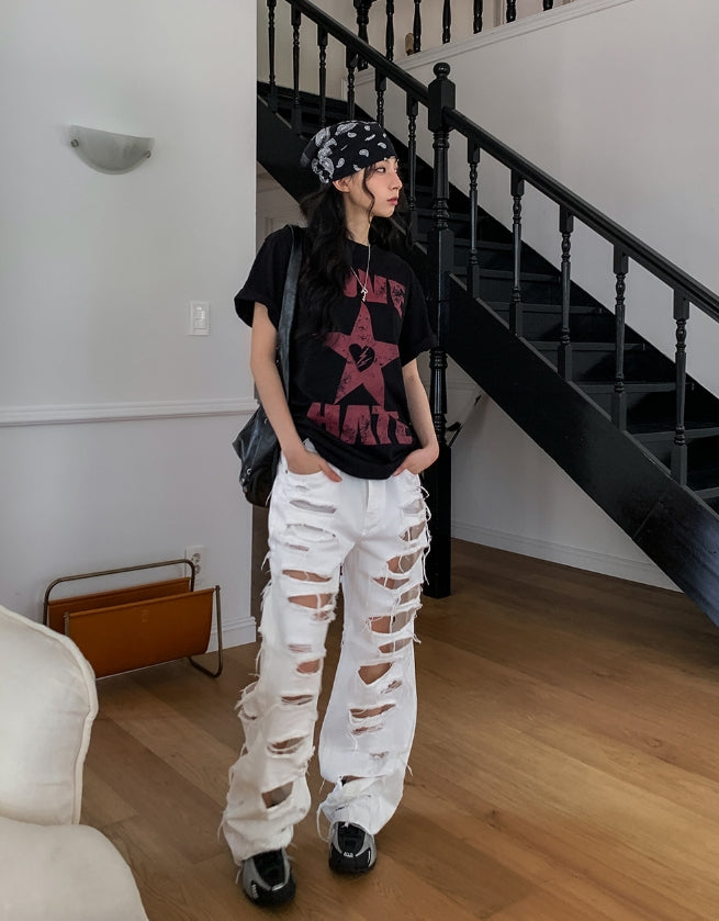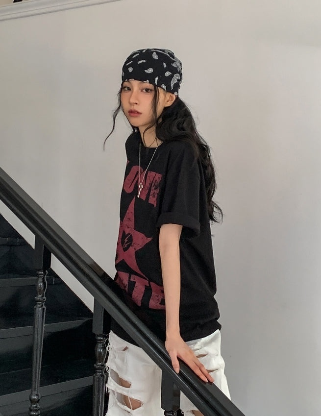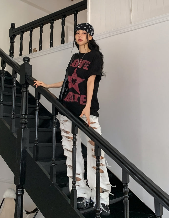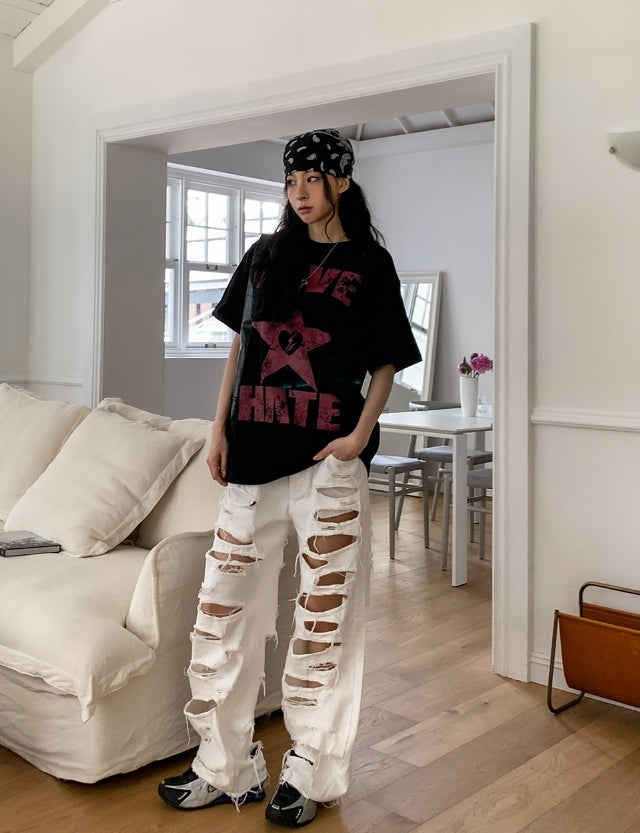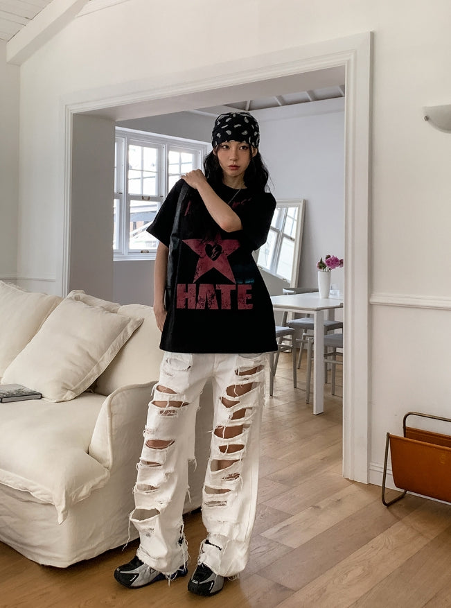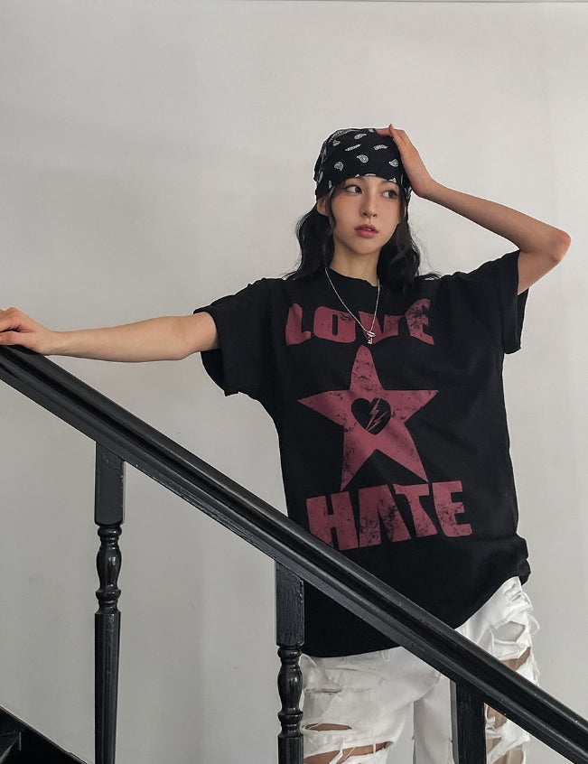 ヘイトラブプリンティングオーバー半袖Tシャツ
