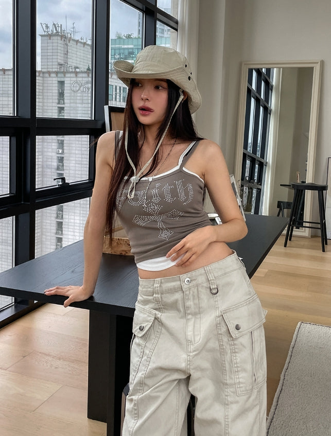 -168cm, top 55size , bottom 26(S) / Khaki, White