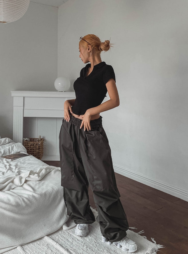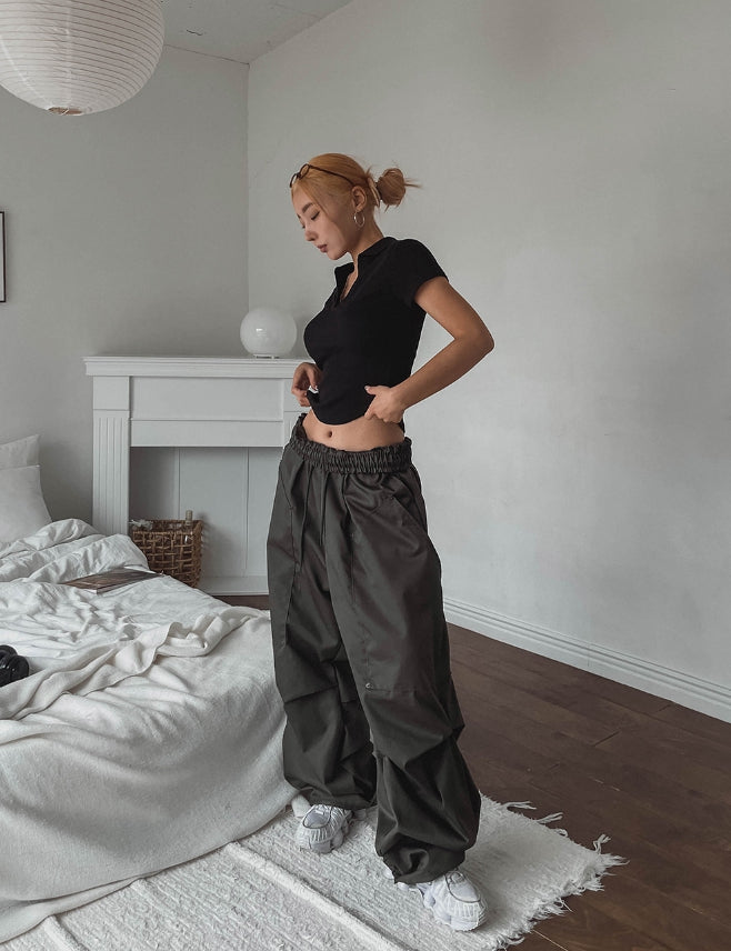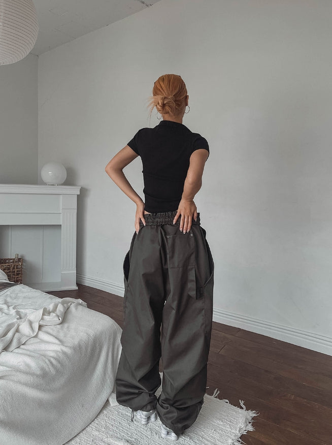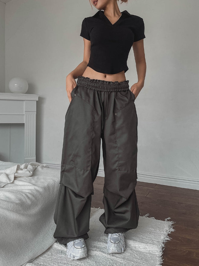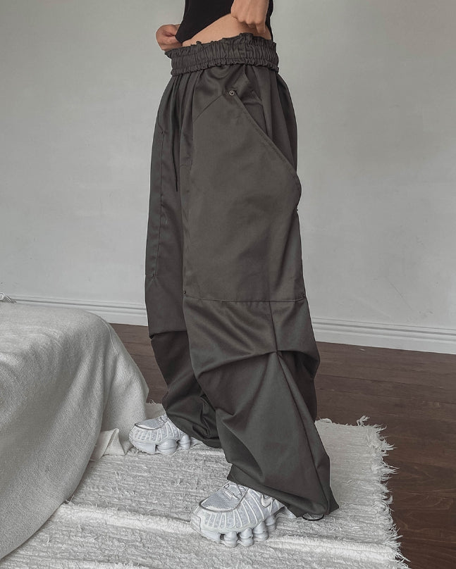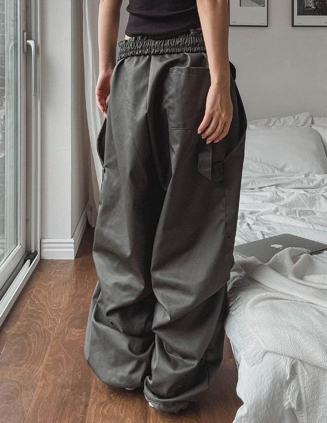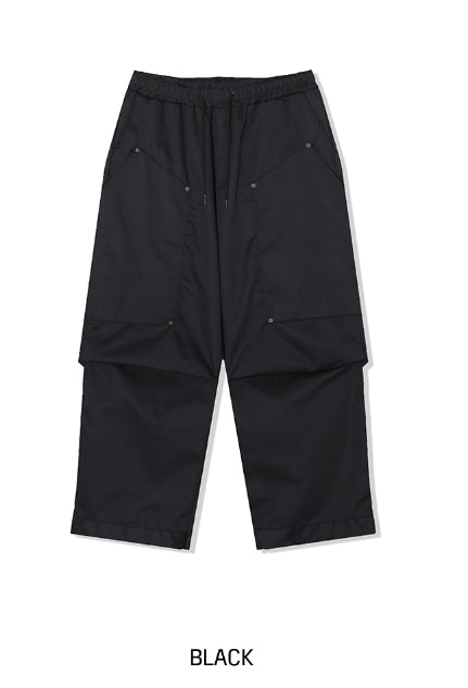 ヘビーダブルニーピンタックワイドストリングパンツ