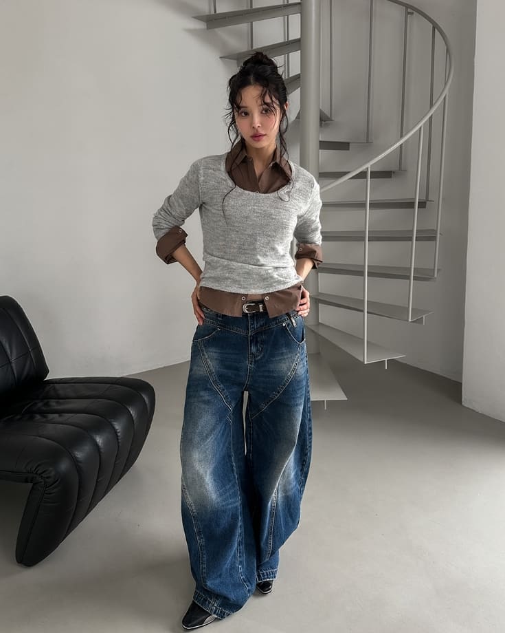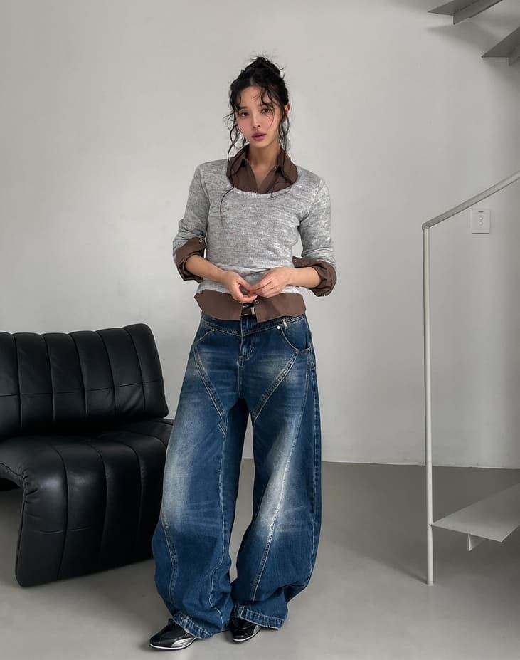 -168cm, top 55size, bottom 27(M) / Pink, Gray