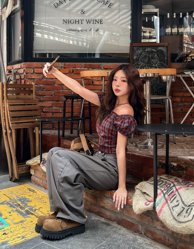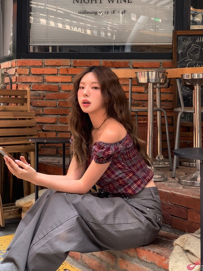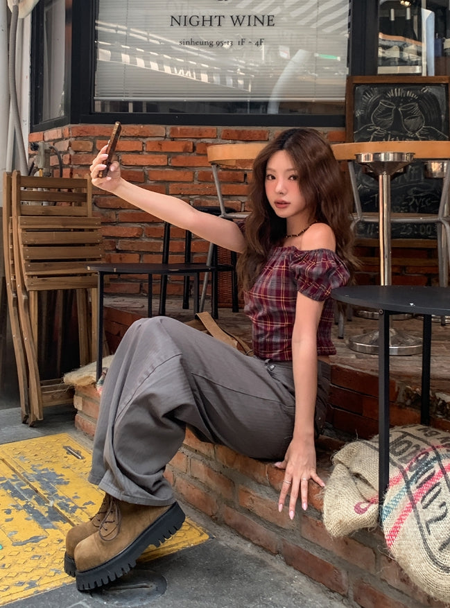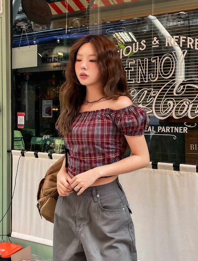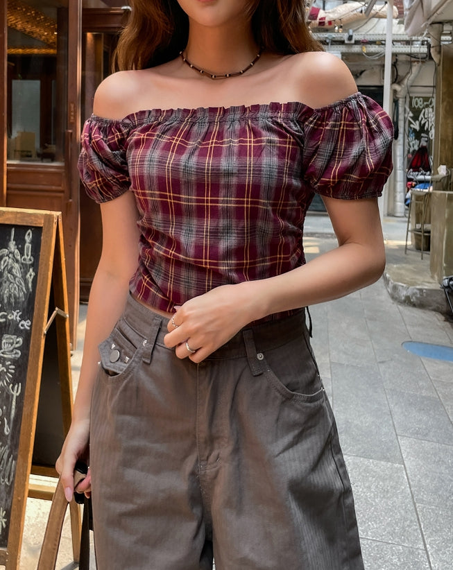 イーエヌシャーリングパフオフショルダー半袖ブラウス