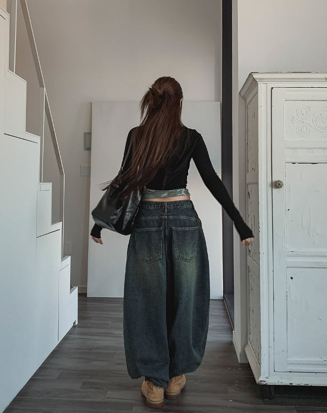 -S (ウエスト76 ヒップ124 股上35 股下76 もも周り88 裾周り36 総丈111)