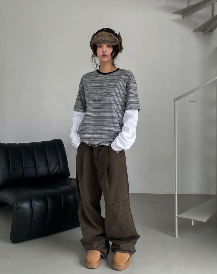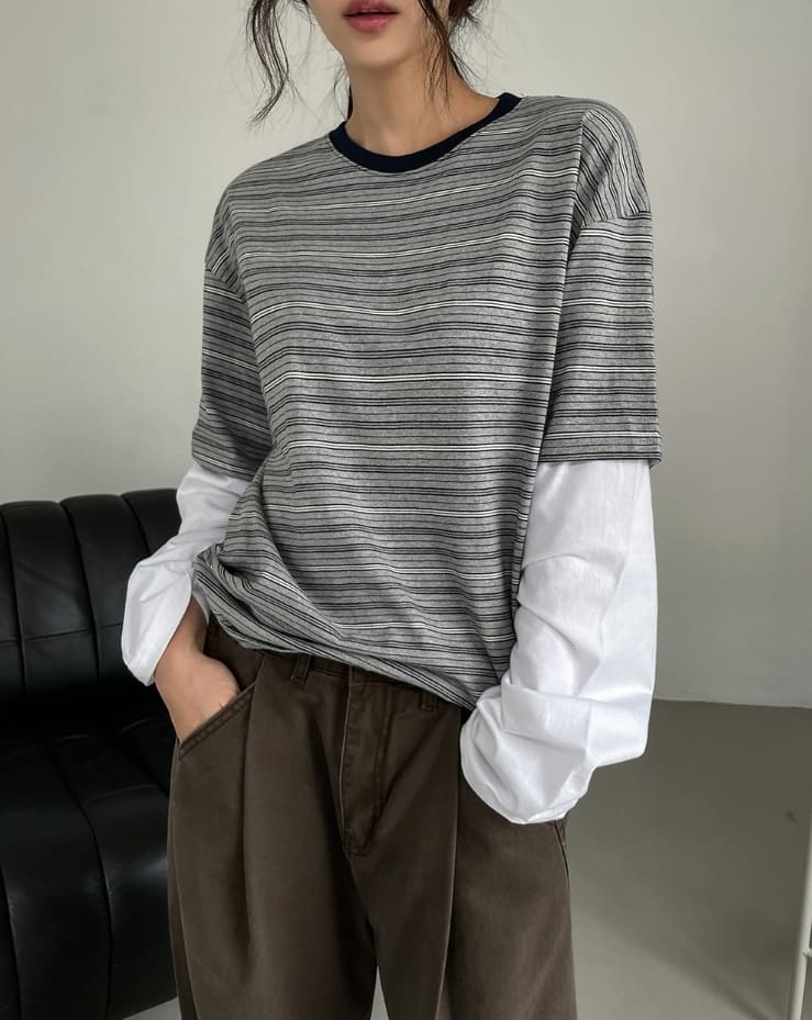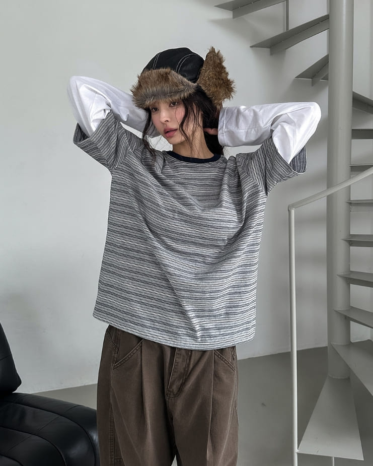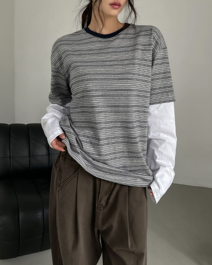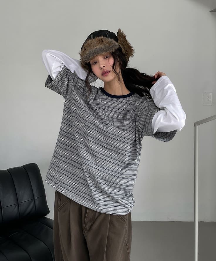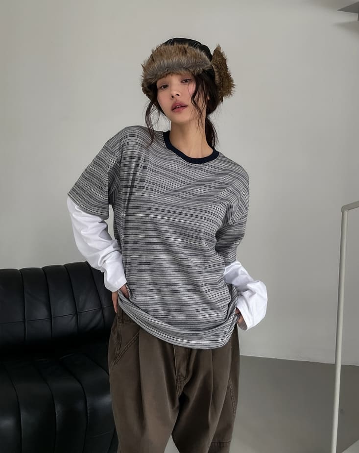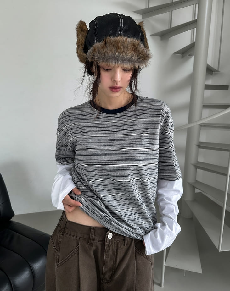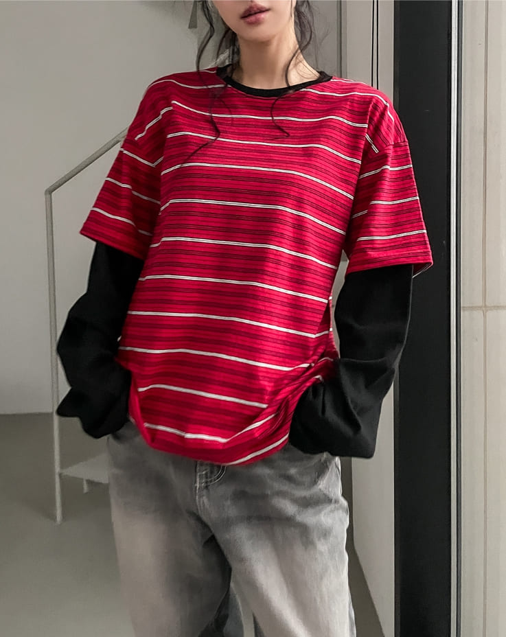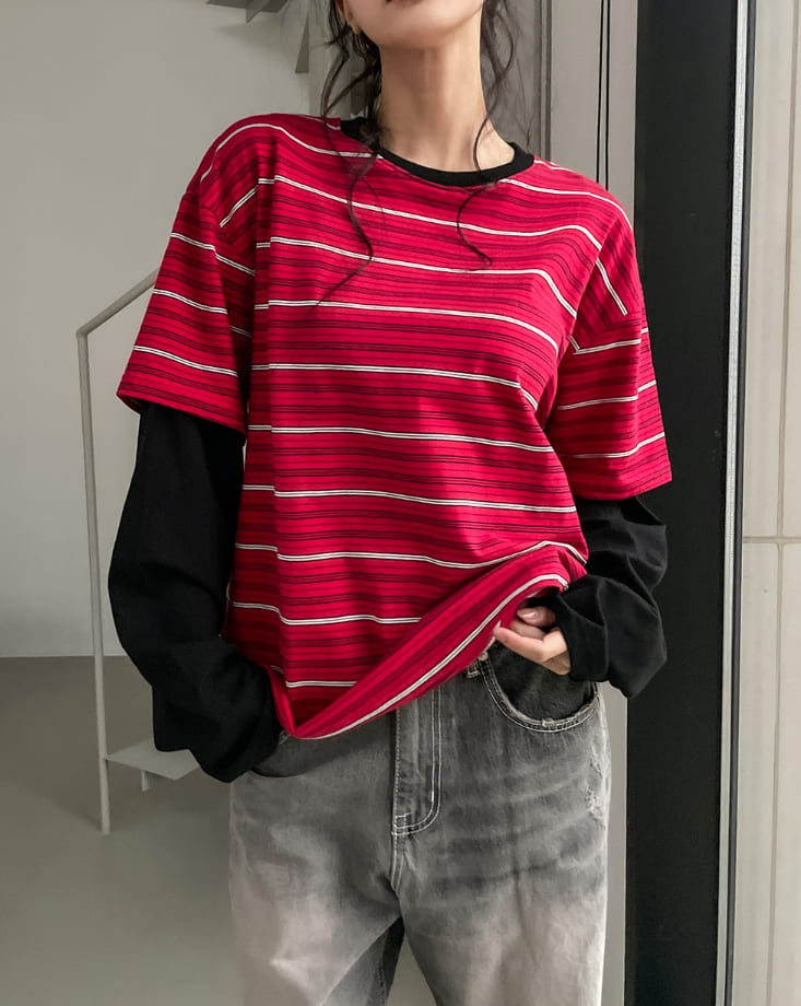 キンダーマルチボーダーレイヤード長袖Tシャツ