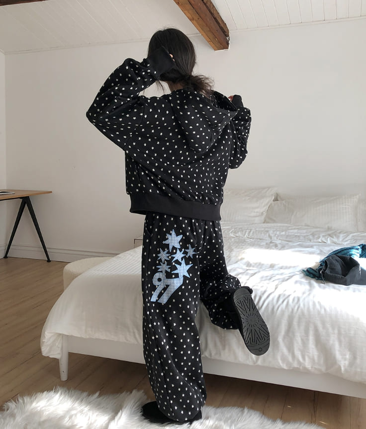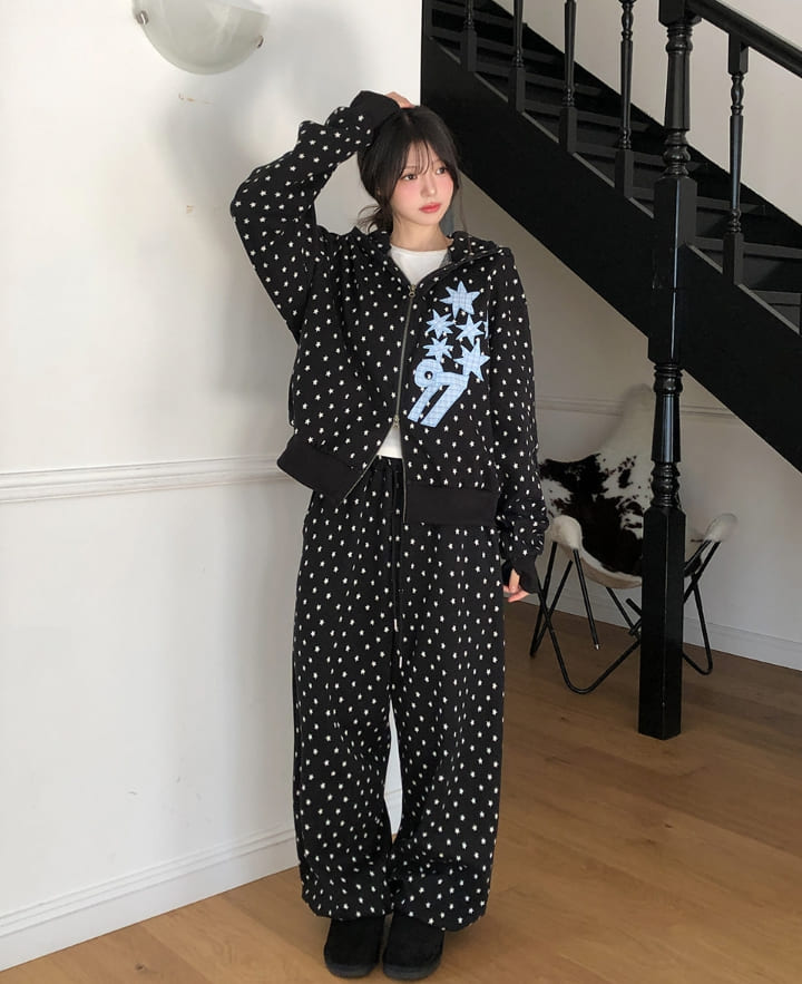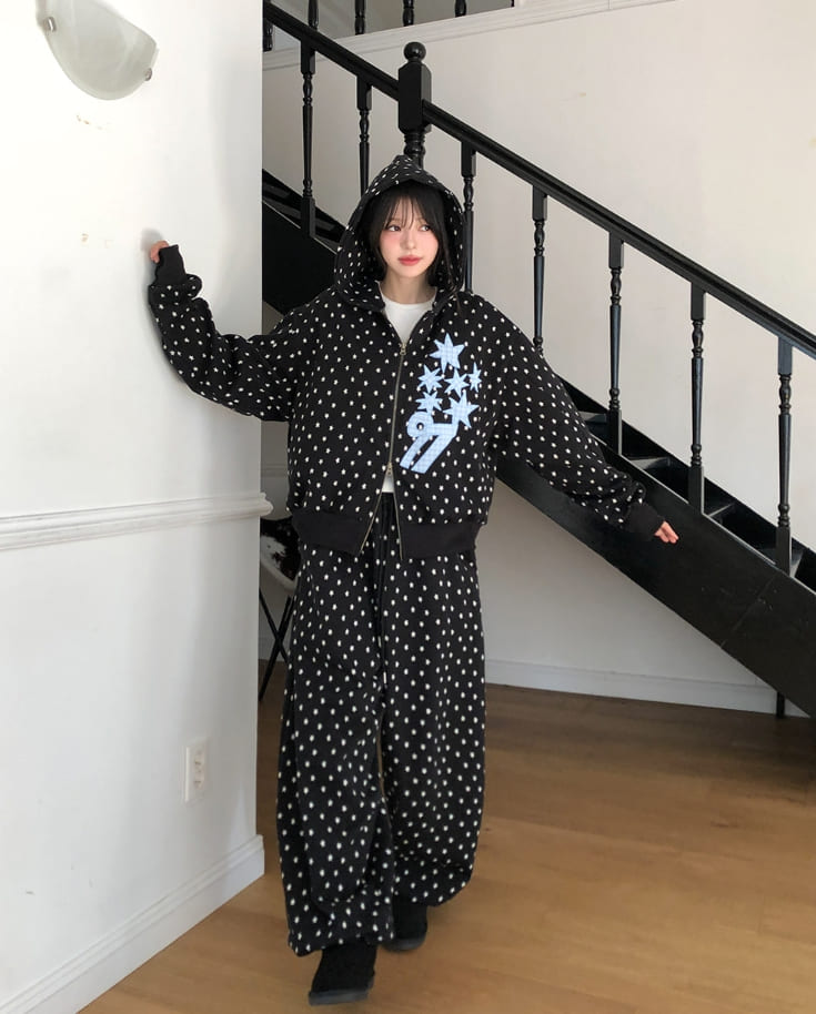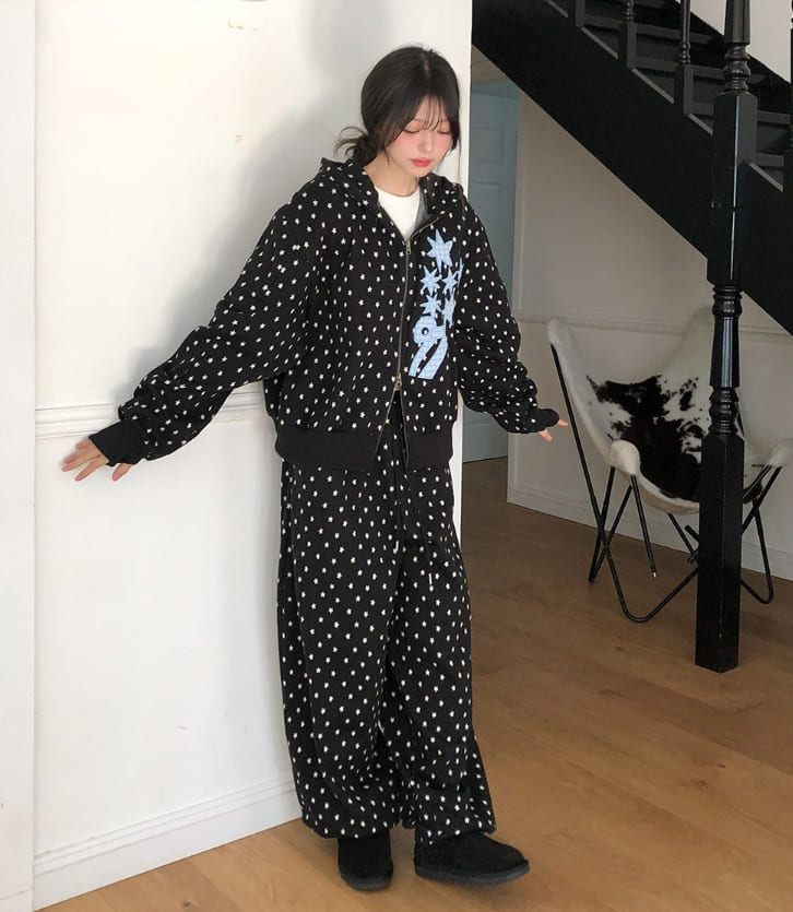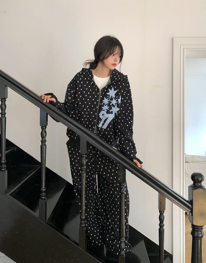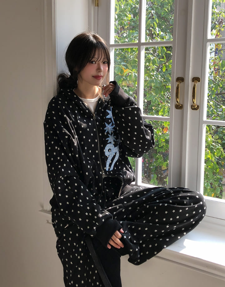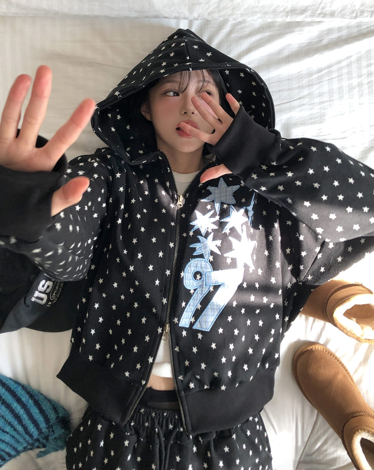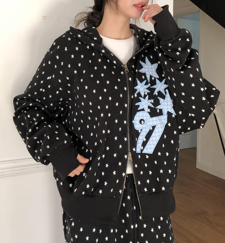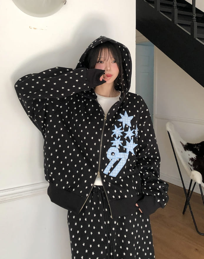 Kitsch Star Check Patch Two-Way Hood Zip-Up