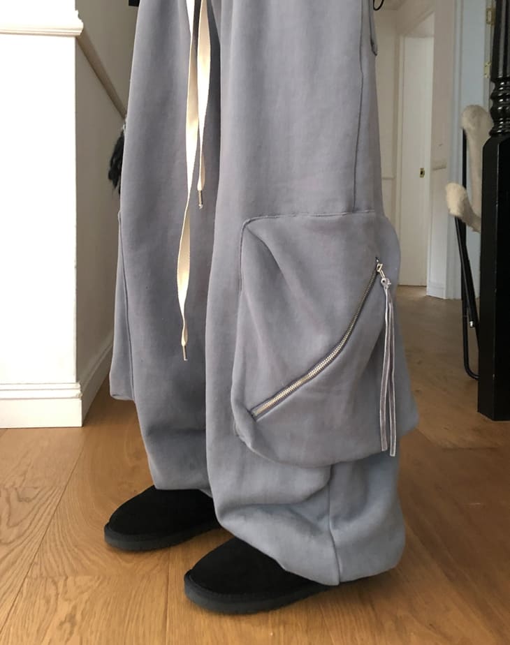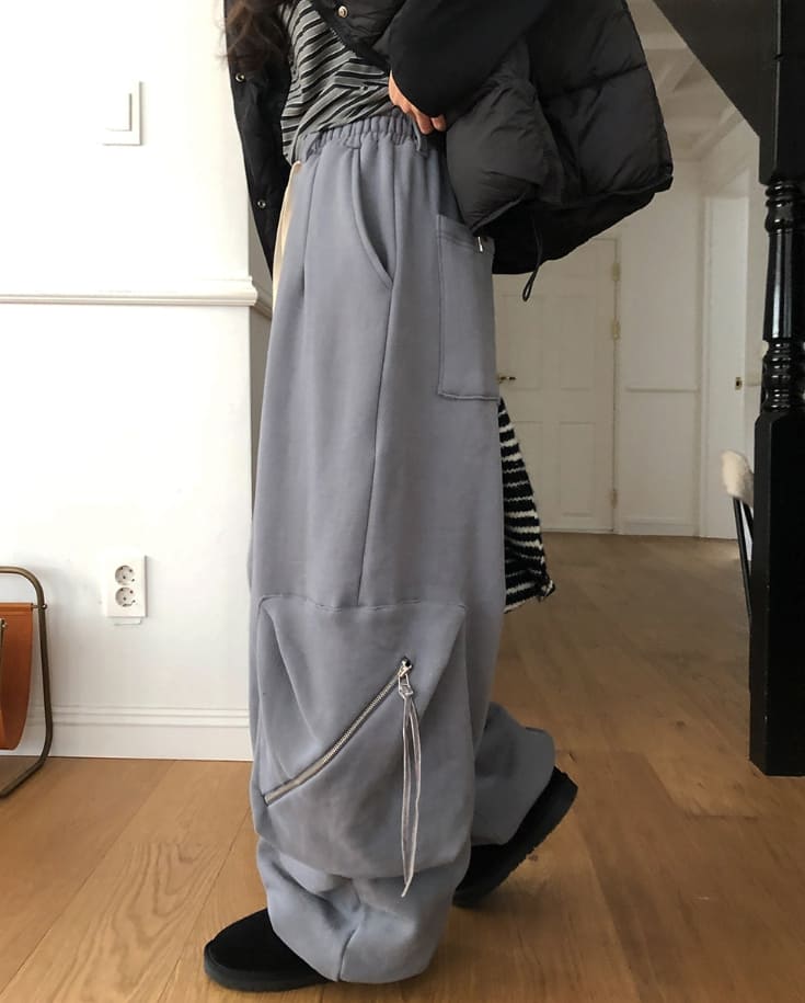 レトジッパーポケット起毛スウェットカーゴパンツ