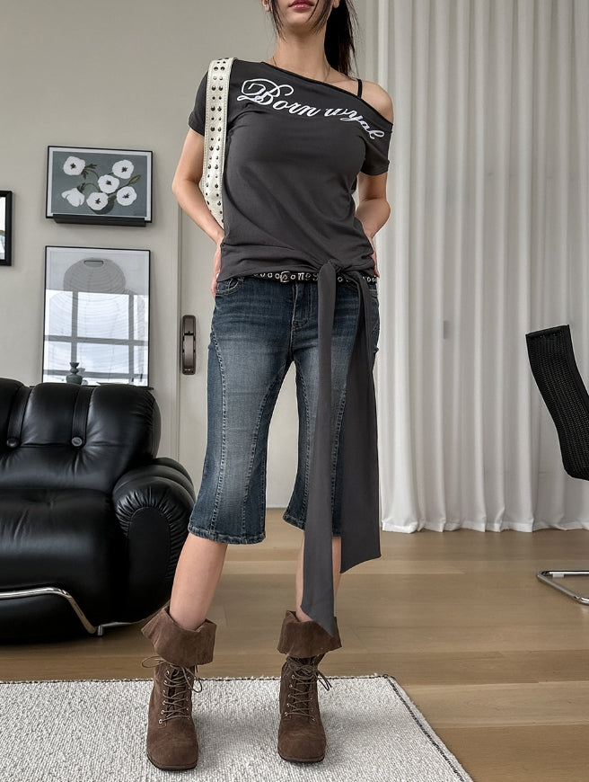 Likee cut slim capri denim pants