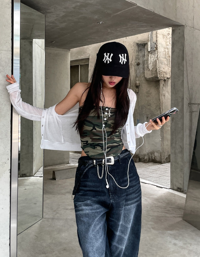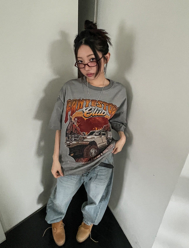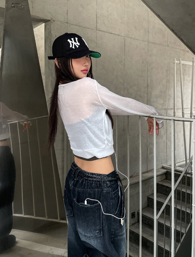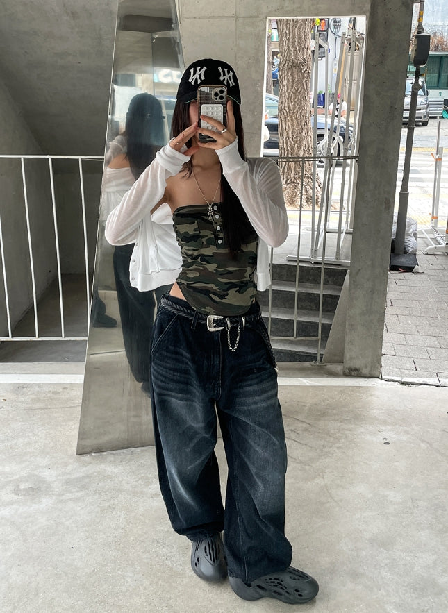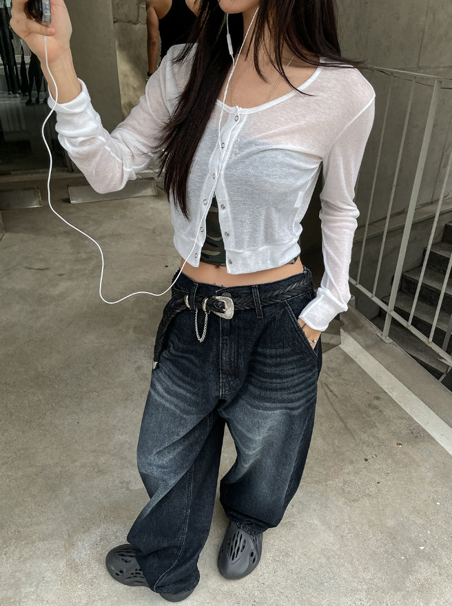 Likee semi-balloon washed denim pants