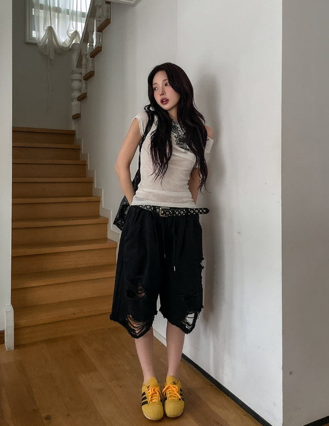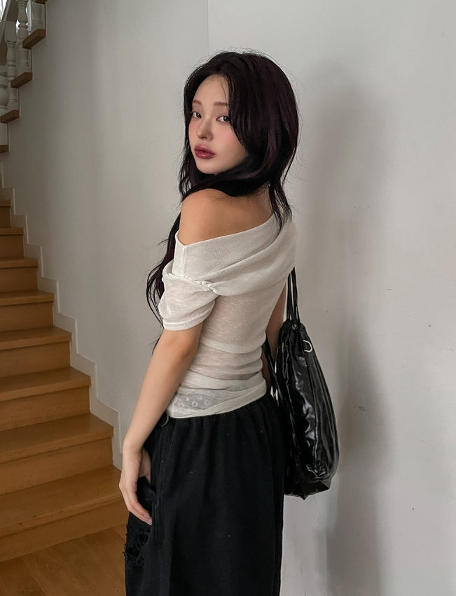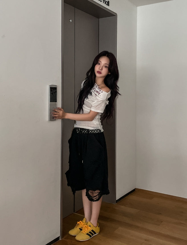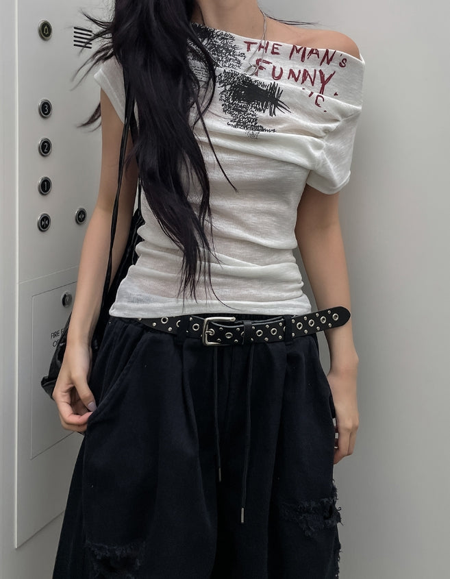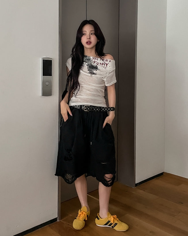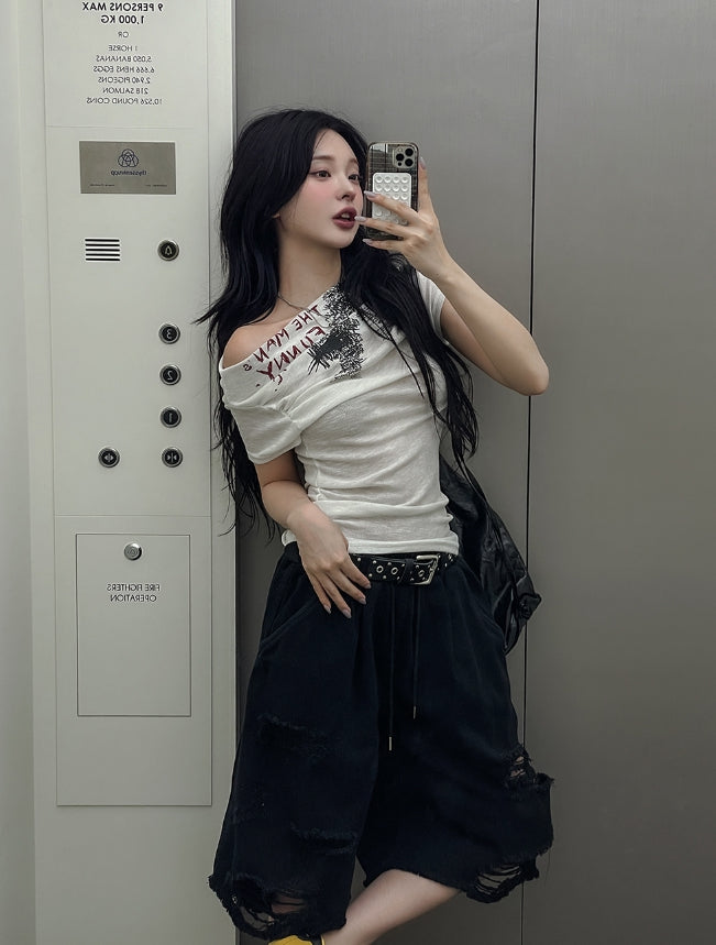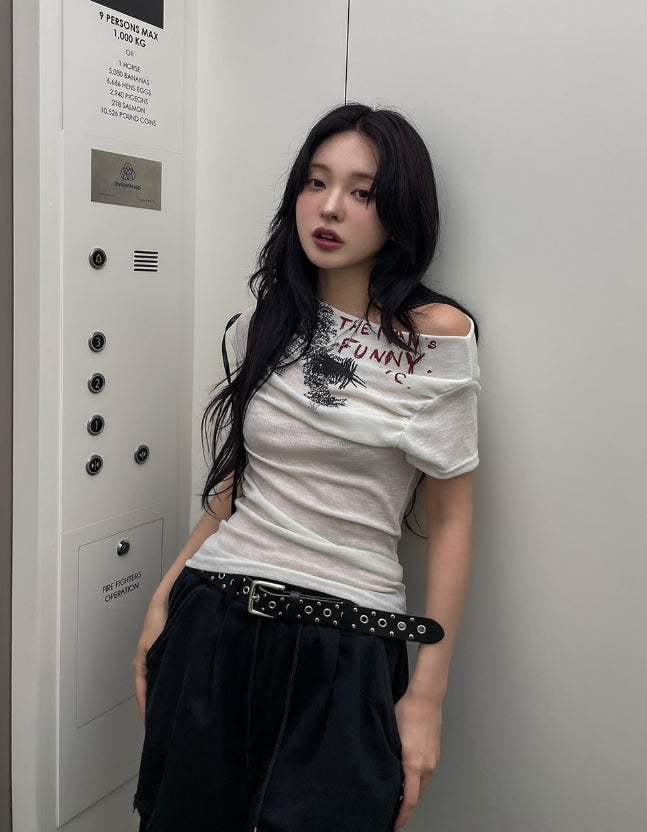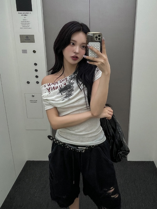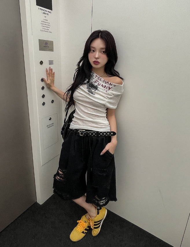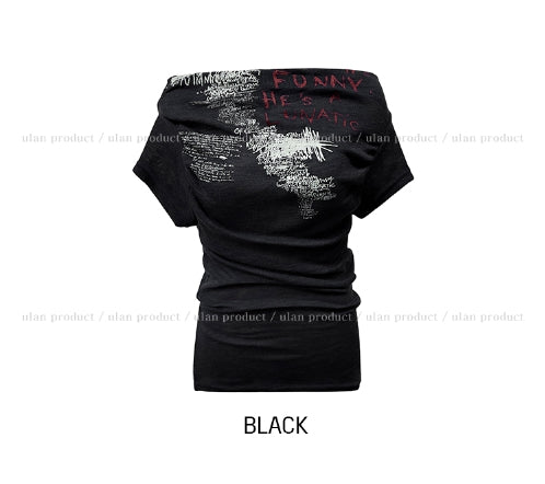 ルナティックファンキープリントオフショルダー半袖Tシャツ