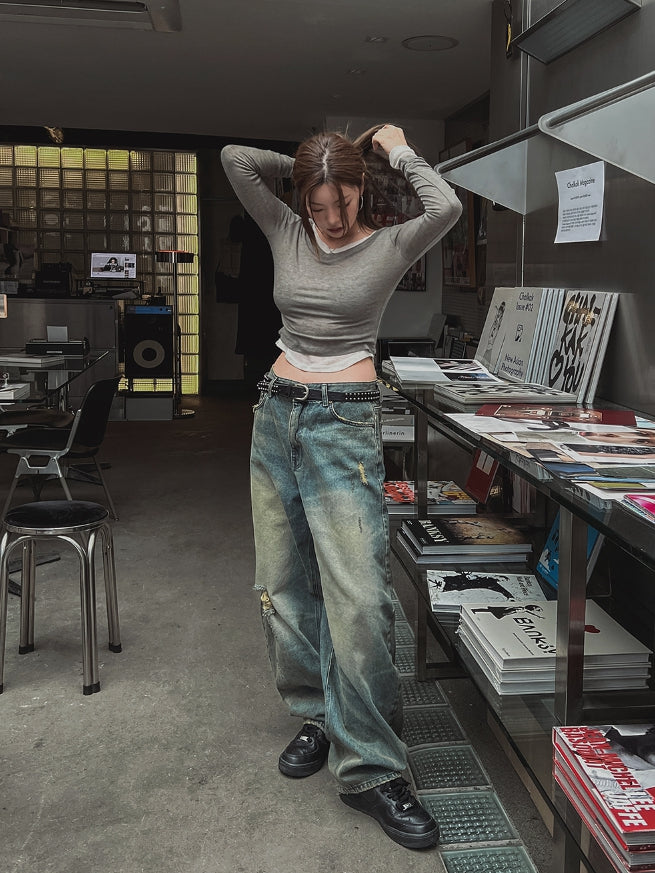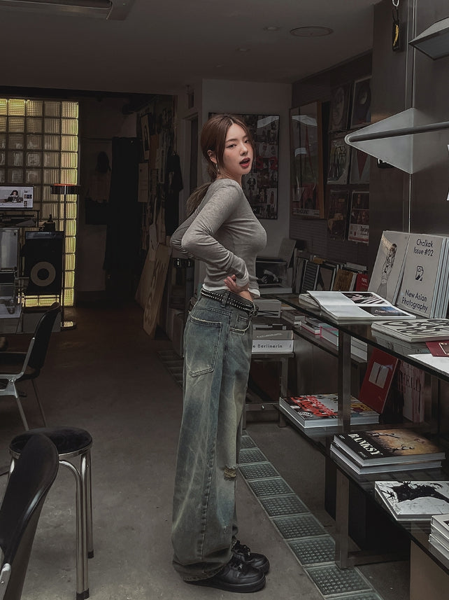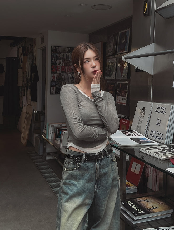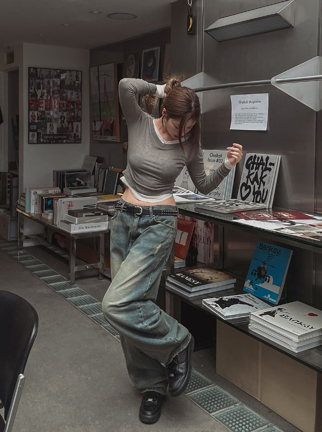 -163cm, top 44size , bottom 26(S) / Ivory, Gray