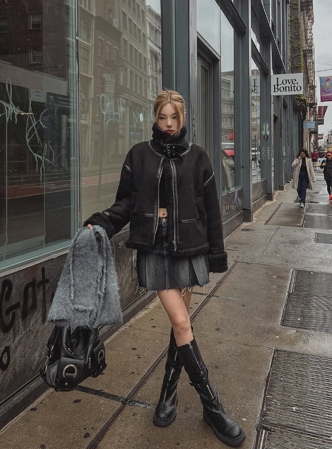 [メイド/男女兼用]ダブルバックルハイネックムートン