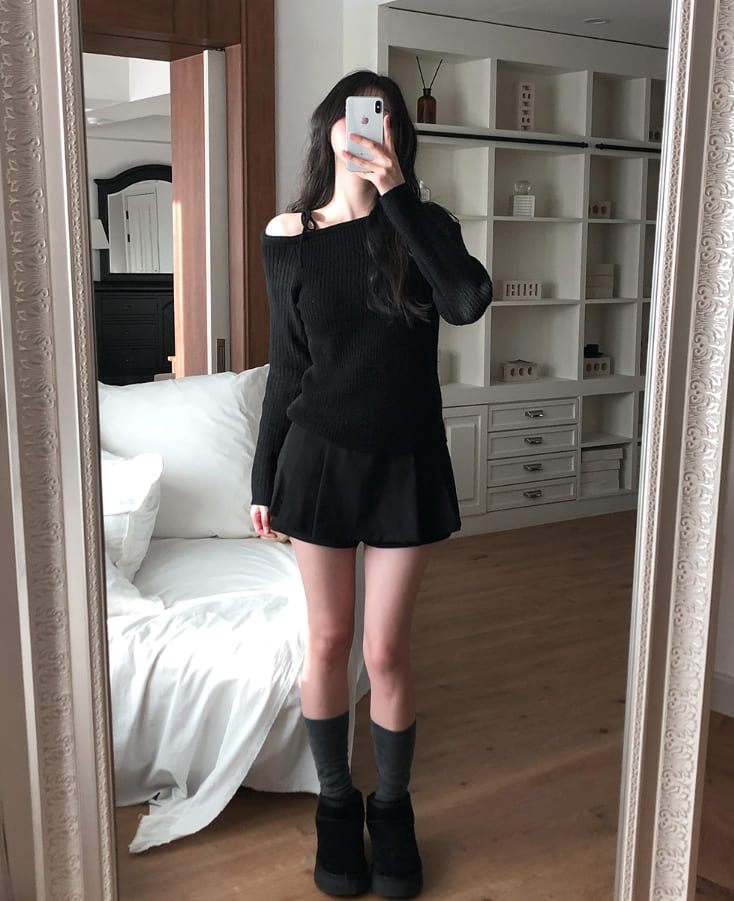 -165cm, top 55size , bottom 26(S) / Charcoal, Black