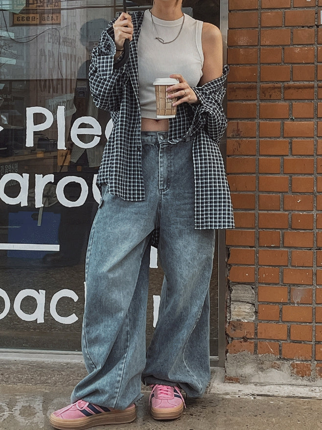 -163cm, top 44size , bottom 26(S) , Black , Denim Mサイズ着用