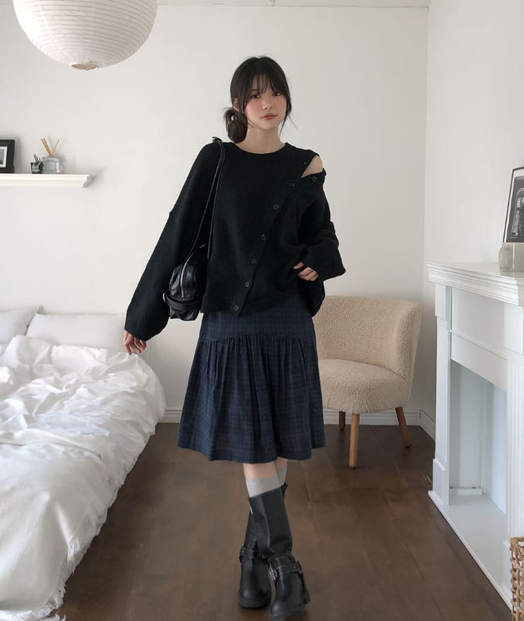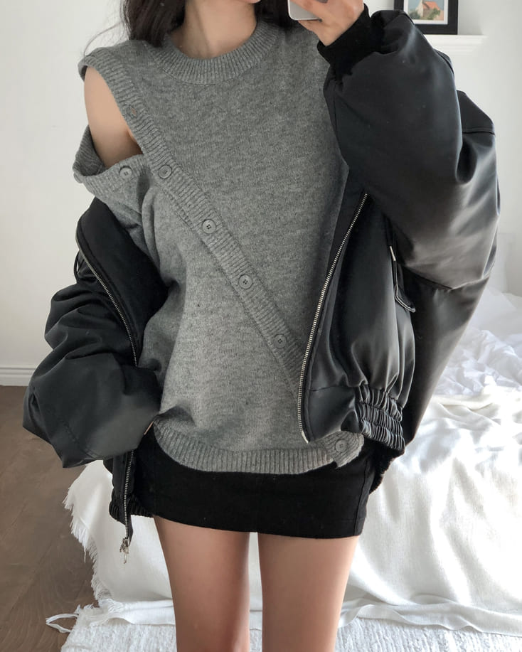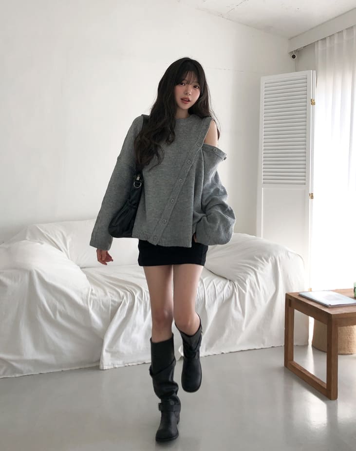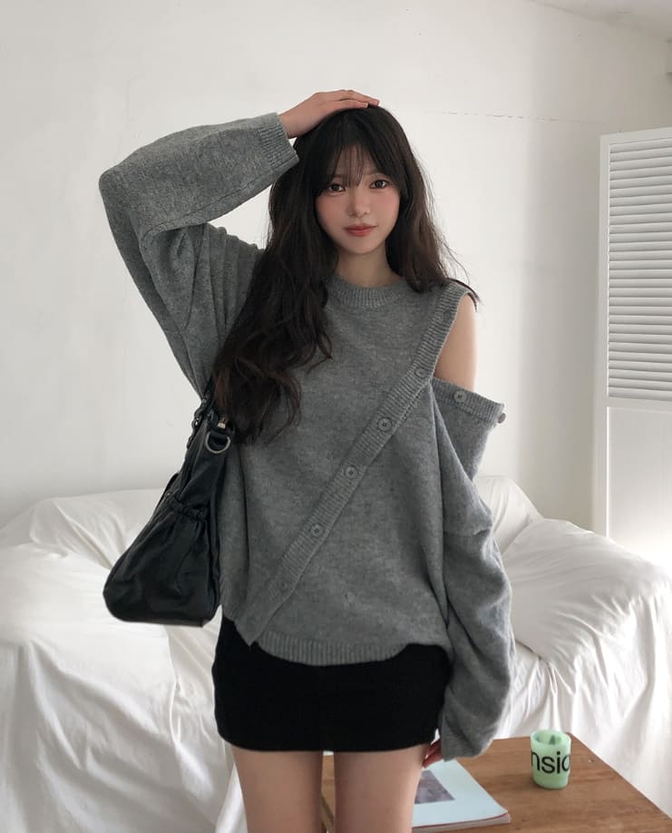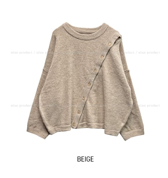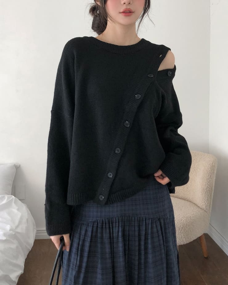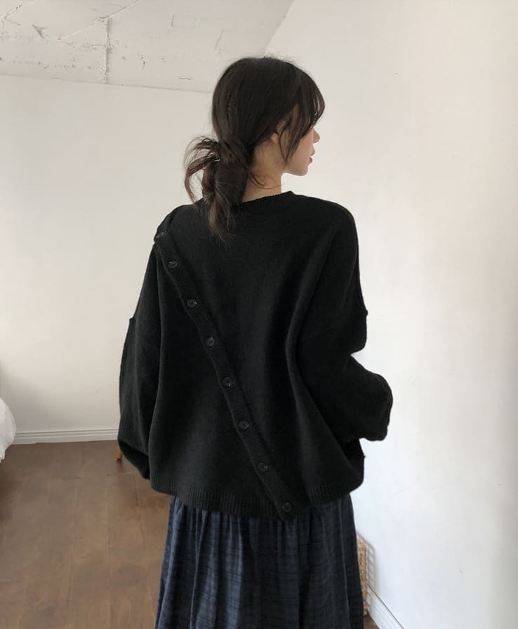 Mayo Unbal Button Round Wool Knit