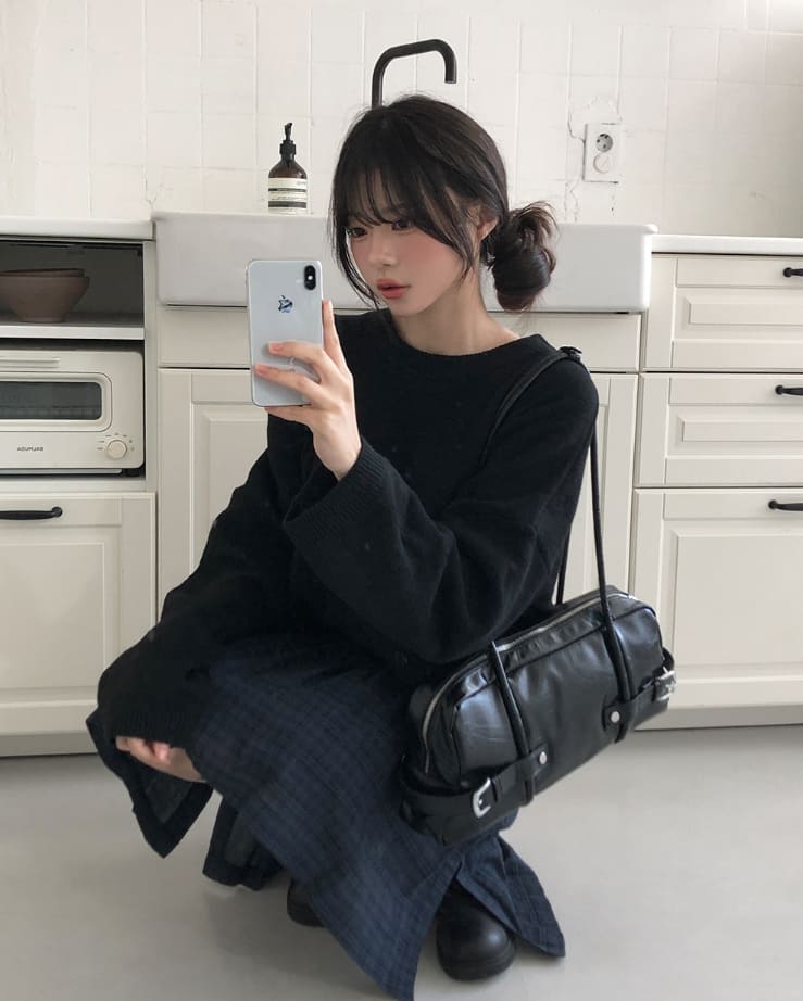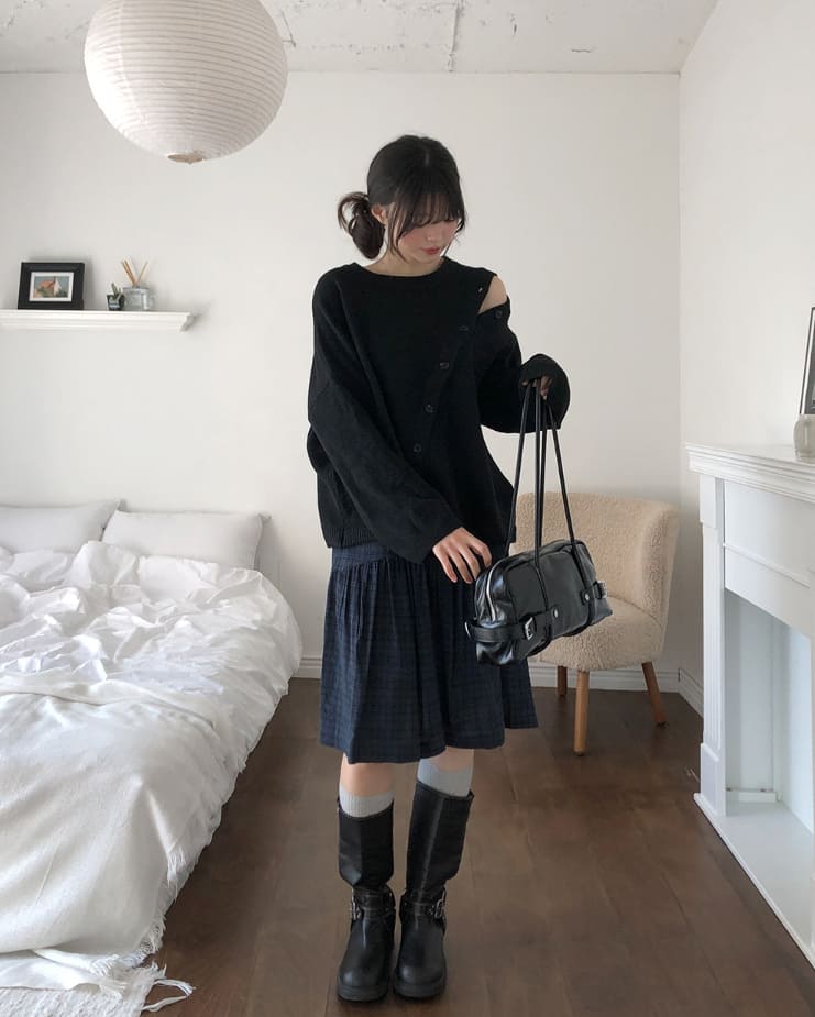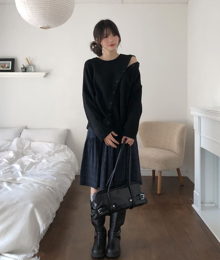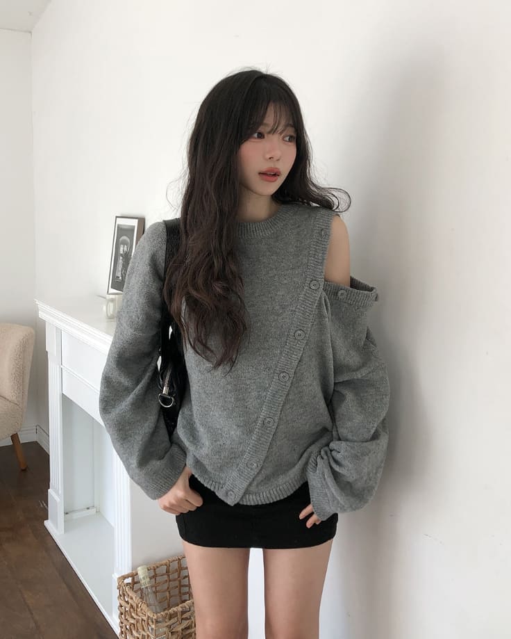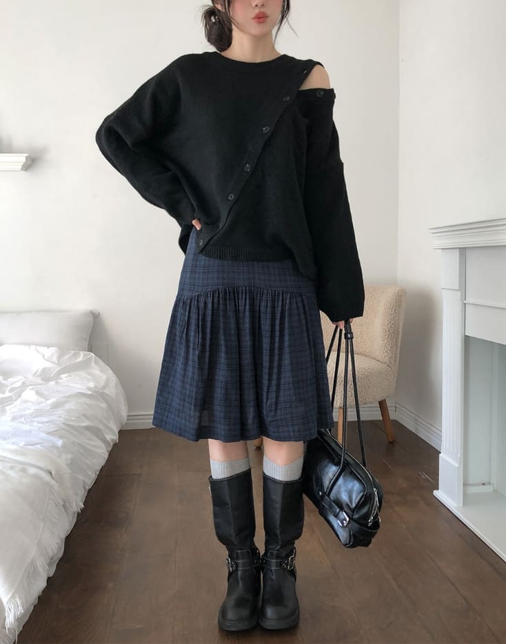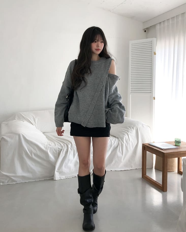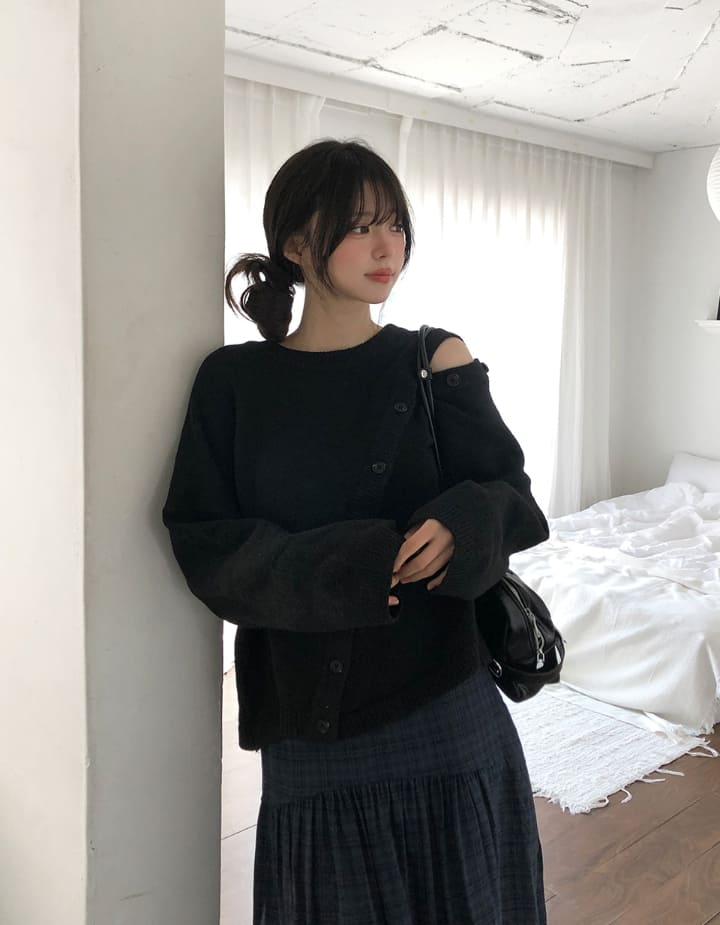 Mayo Unbal Button Round Wool Knit