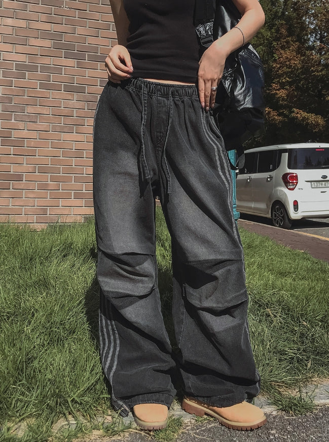 -ONE SIZE (ウエスト(ゴム)64 ヒップ124 股上34 股下75 もも周り78 裾周り64 総丈109)