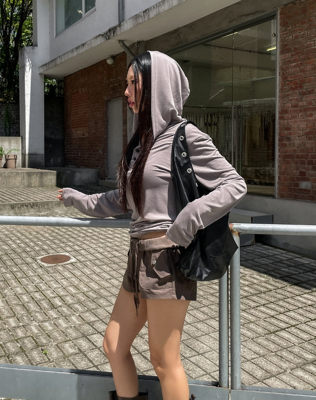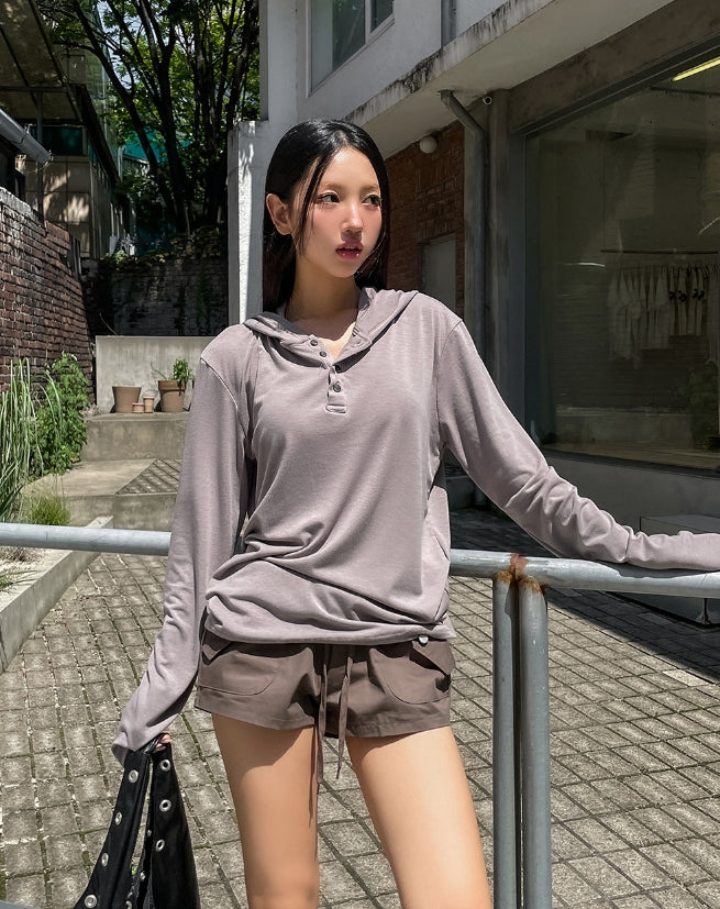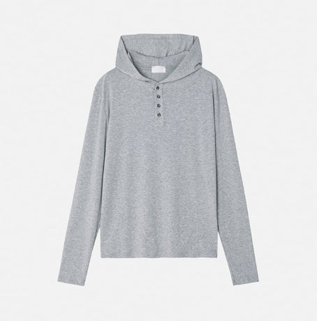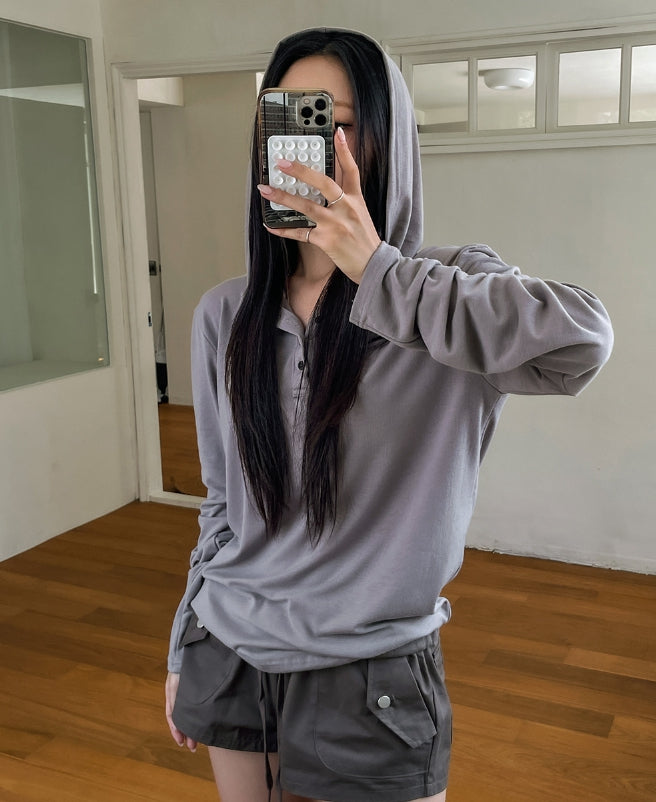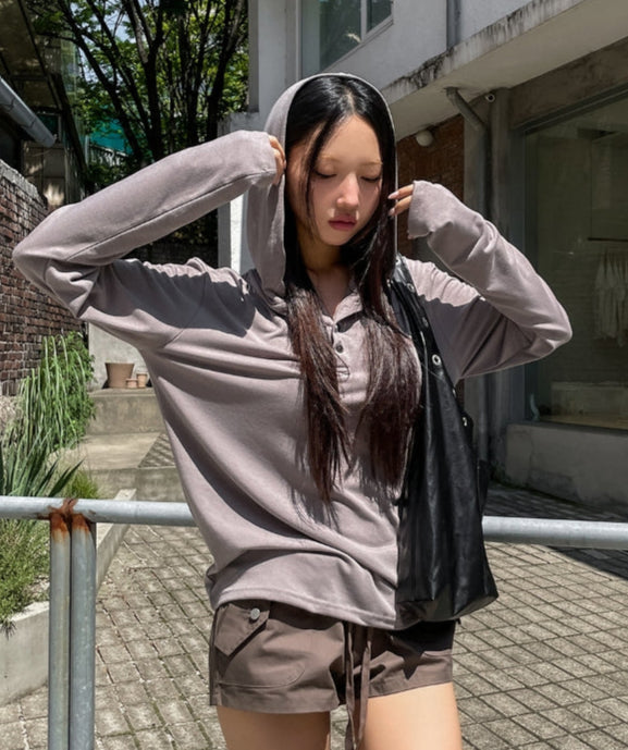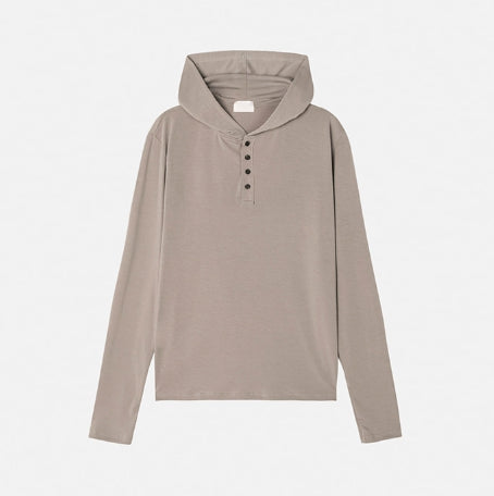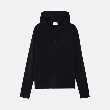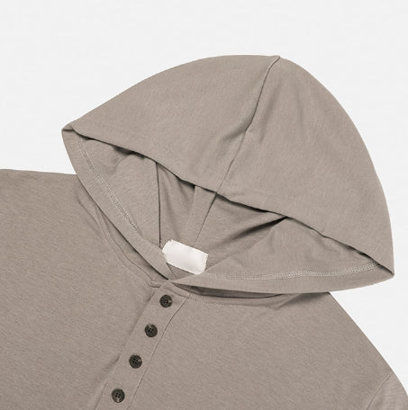 Mude Loose Fit Henley Neck Long Sleeve Hoodie